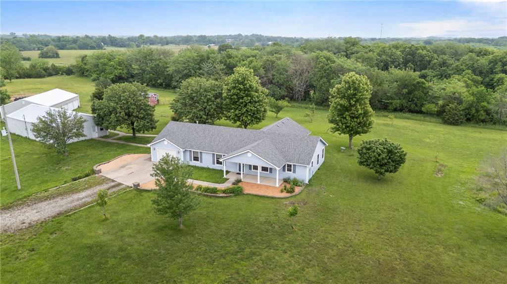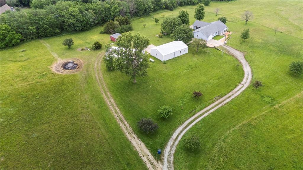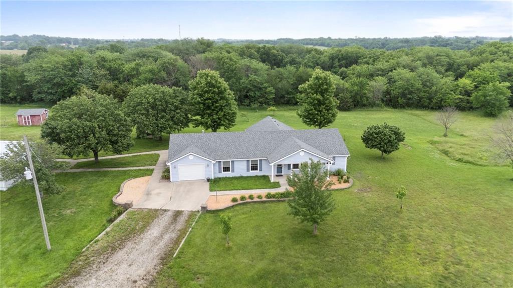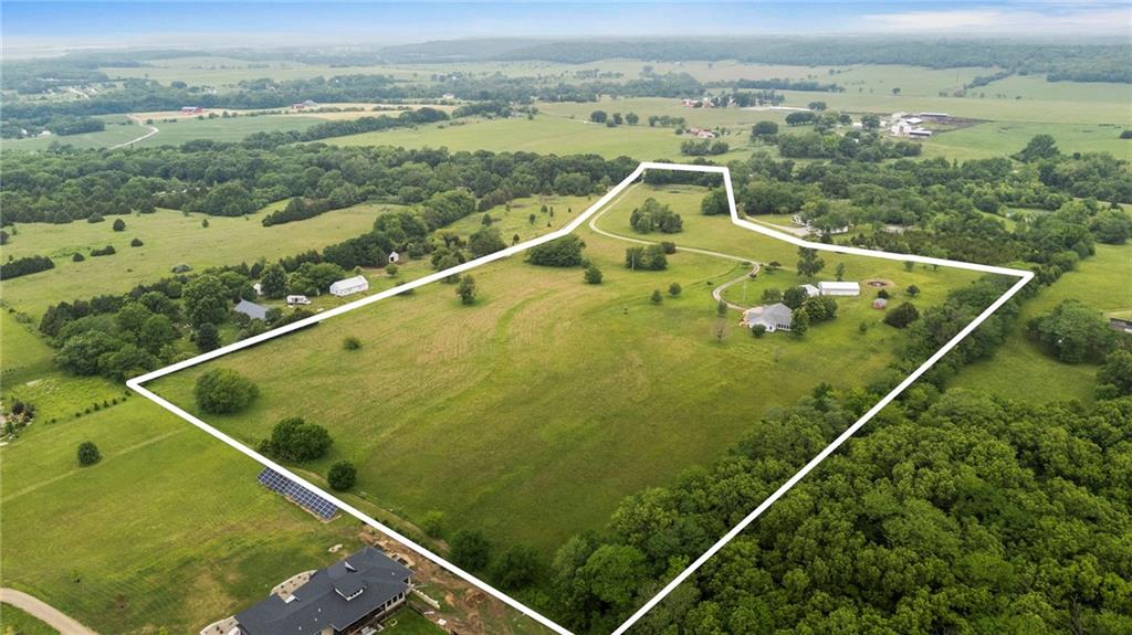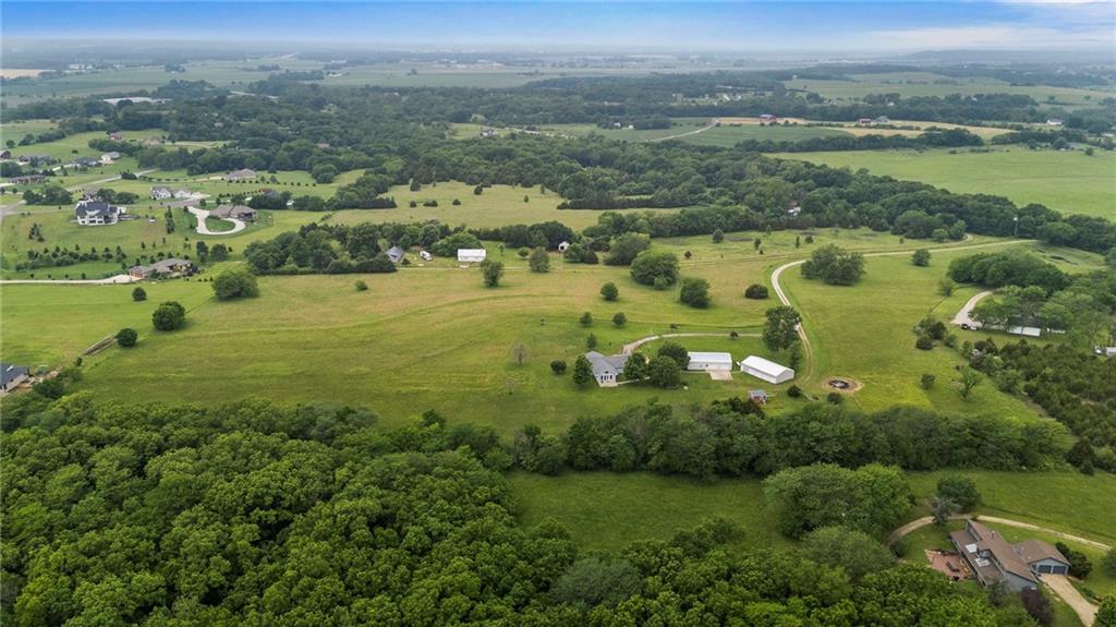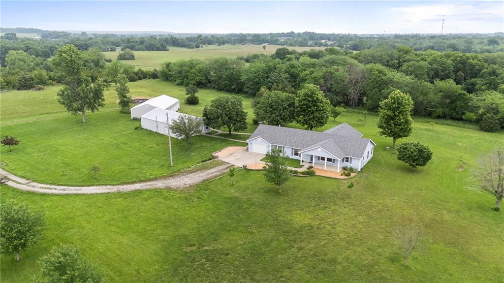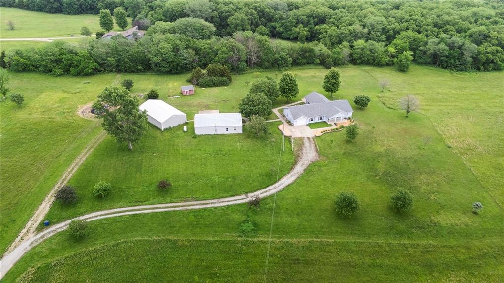 Serene Acreage living in the country tucked away atop of hill with views for miles! 22+ acres for your own space and tranquility. 2,000+ square foot ranch built in 2005. Zero entry - no steps. H-U-G-E vaulted addition with sun galore. Two (2) large functional outbuildings, each 1,500 sq ft (50'x30'). Save hundreds on utilities with Geothermal($120/month combined!!). Pond. Peaceful. Trees. Easy commute to Lawrence and KC Metro!! 22.7 Acres. 2,000+ square foot ranch built in 2005. Zero entry - no steps. H-U-G-E vaulted addition with sun galore. Two (2) large functional outbuildings, each 1,500 sq ft (50'x30'). Geothermal to save on utilities ($130/month combined!!). Pond. Peaceful. Trees. Access directly off K-32 (limited dust - located on asphalt). Will go fast!! Access directly off K-32 (limited dust - located on asphalt). Will go fast!!