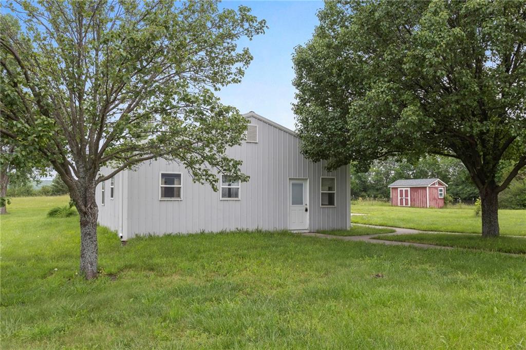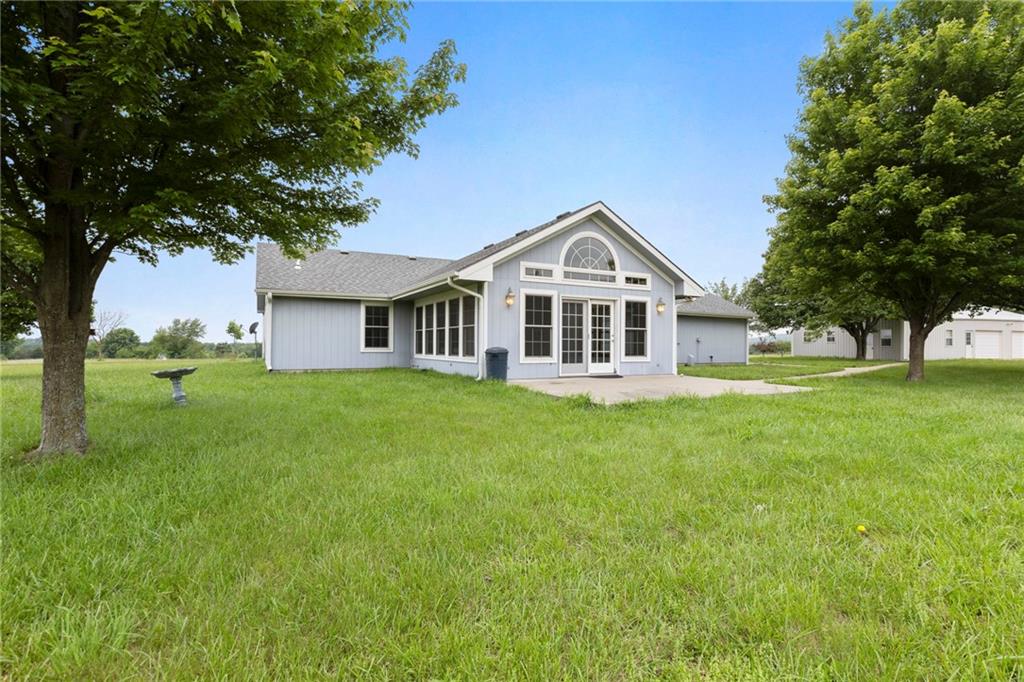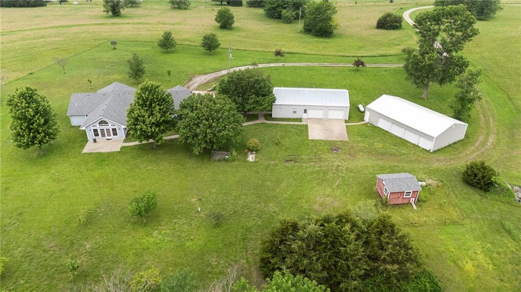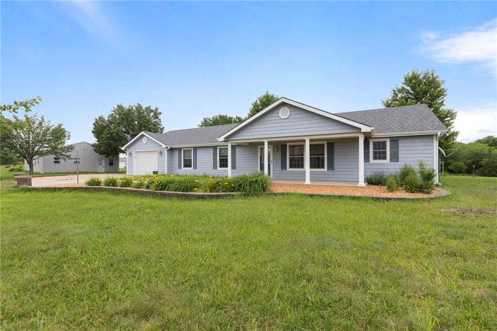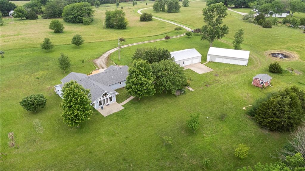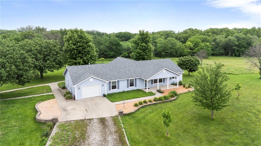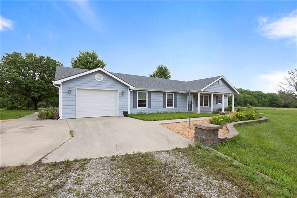 Serene Acreage living in the country tucked away atop of hill with views for miles! 22+ acres for your own space and tranquility. 2,000+ square foot ranch built in 2005. Zero entry - no steps. H-U-G-E vaulted addition with sun galore. Two (2) large functional outbuildings, each 1,500 sq ft (50'x30'). Save hundreds on utilities with Geothermal($120/month combined!!). Pond. Peaceful. Trees. Easy commute to Lawrence and KC Metro!! 22.7 Acres. 2,000+ square foot ranch built in 2005. Zero entry - no steps. H-U-G-E vaulted addition with sun galore. Two (2) large functional outbuildings, each 1,500 sq ft (50'x30'). Geothermal to save on utilities ($130/month combined!!). Pond. Peaceful. Trees. Access directly off K-32 (limited dust - located on asphalt). Will go fast!! Access directly off K-32 (limited dust - located on asphalt). Will go fast!!