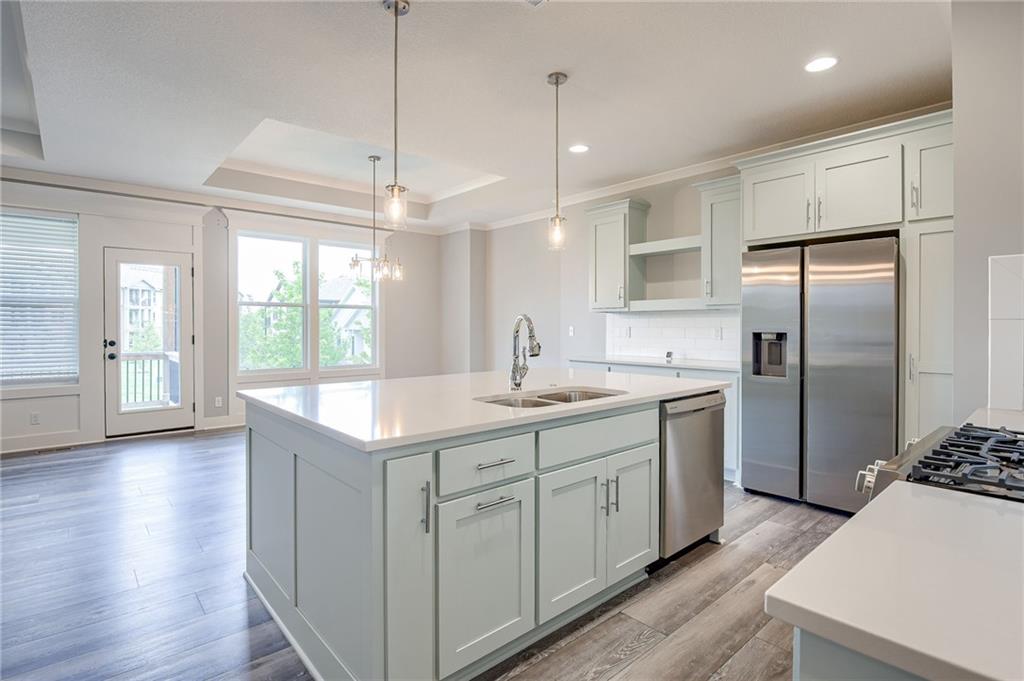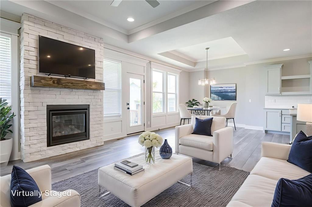 STUNNING Stand Alone Villa, Reverse 1 1/2 Story. "The Estes" by Lambie Grand LLC features 3 bedrooms, 3 baths, 2 car garage. First Floor has Primary Suite, 2nd Bedroom, 2nd Full Bath, Laundry/Mud Room, Great Room, Dining Room. Custom Kitchen with spacious Walk-in Pantry, Stainless Appliances, and Tray Ceilings. Hardwood floors in Entry, Great Room, Dining Room, and Kitchen. Lower Level has 3rd Bedroom, Large Rec Room, 3rd Full Bath, Optional 4th Bedroom, and plenty of storage. Covered Back Patio! Maintenance provided! Award winning Blue Valley School District!