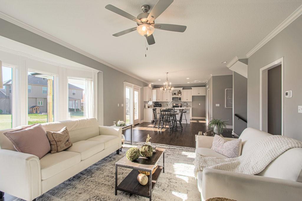 Clay Meadows welcomes back the gorgeous "DUNCAN" by Robertson Construction! A 4 bedroom, 2.5 bath, 3 car garage with a WALKOUT Basement! This popular 2-Story with an Open Layout has beautiful detail throughout! The Main Level offers lots of natural light with the Floor to Ceiling Windows, Kitchen Island, Solid Surface Countertops, Walk-in Pantry, Half Bath, Formal Dining that could easily be converted into a home office and Breakfast area. The 2nd Level has a fantastic Master Suite with a HUGE Master Closet and luxurious Master Bath, 3 more bedrooms and one Full Bath. The Laundry Room is conveniently located on this level with access from the Master Closet. Oversized front porch. Subdivision pool. Located in the highly-rated Liberty School District and close to shopping, entertainment, local amenities and the Historic Downtown Liberty Square. NO KCMO E-TAX!