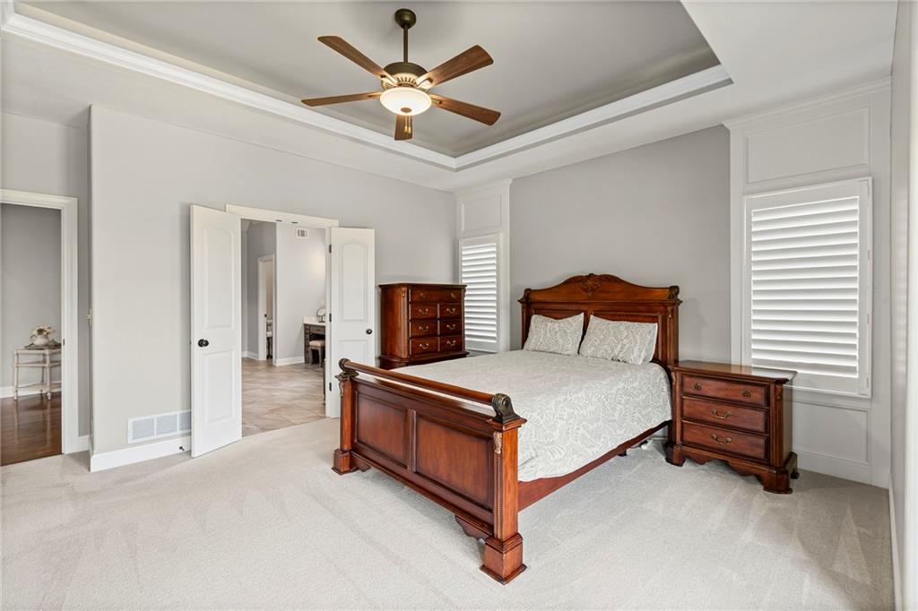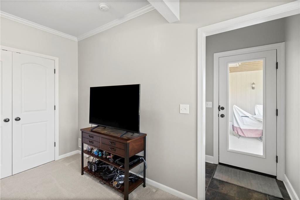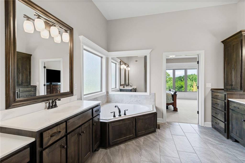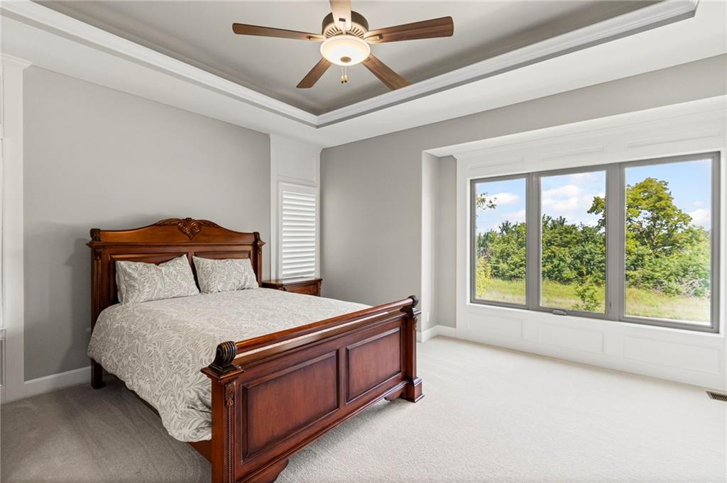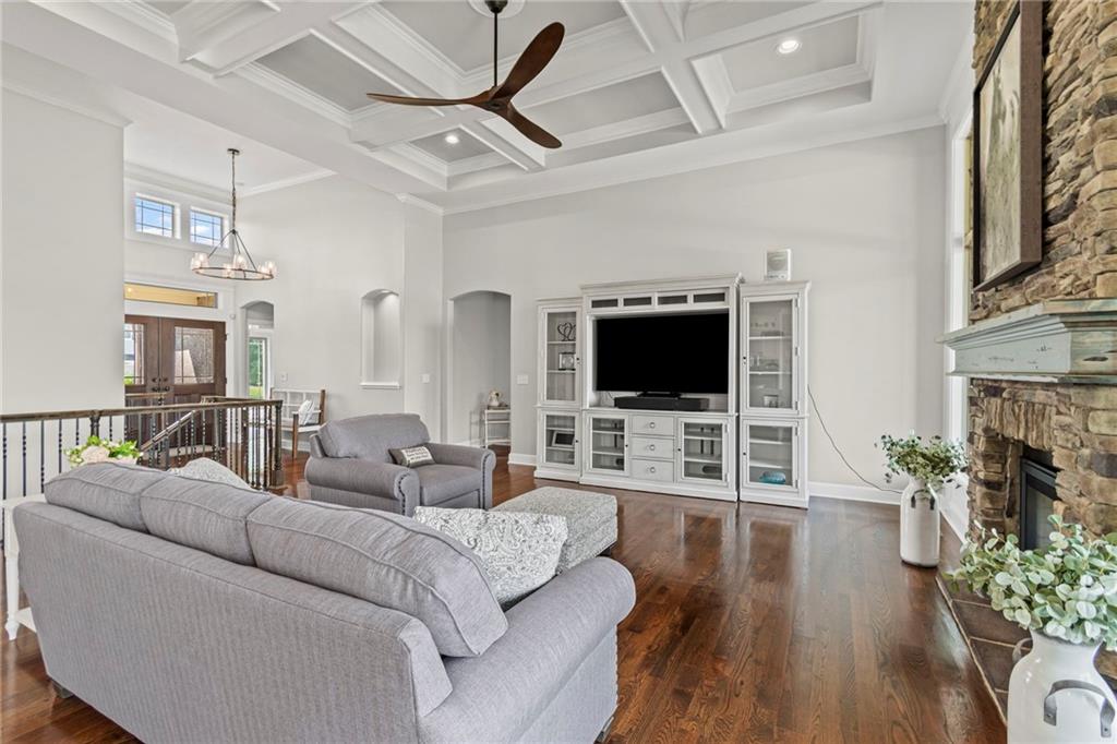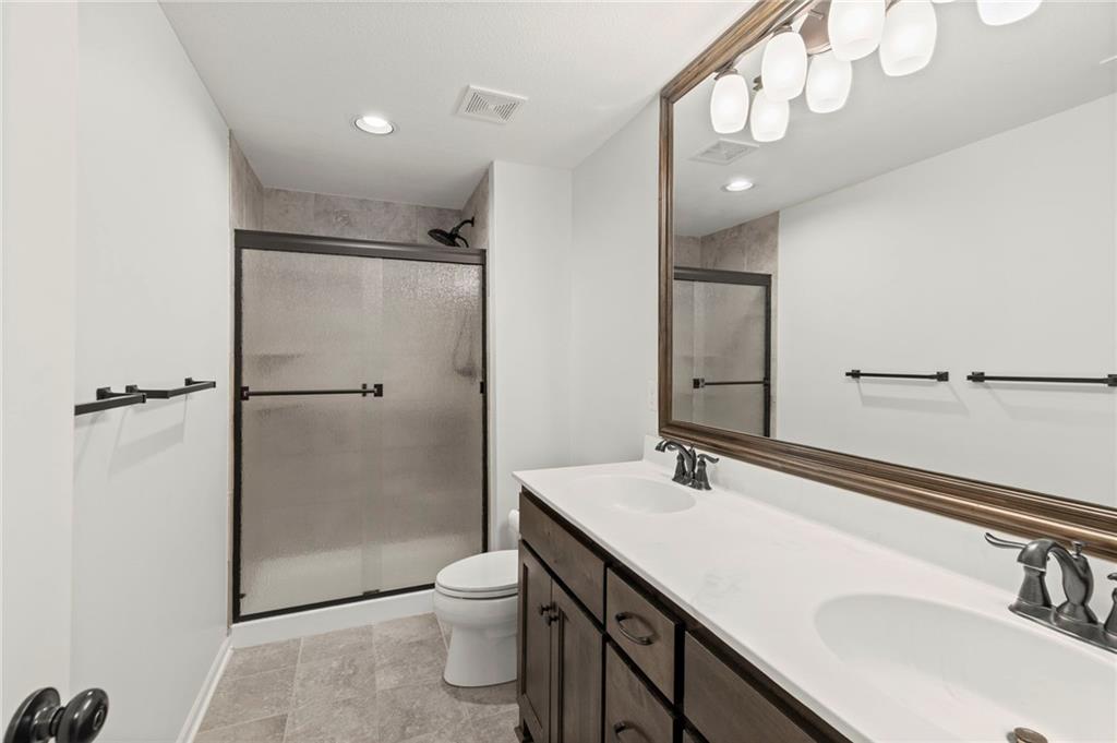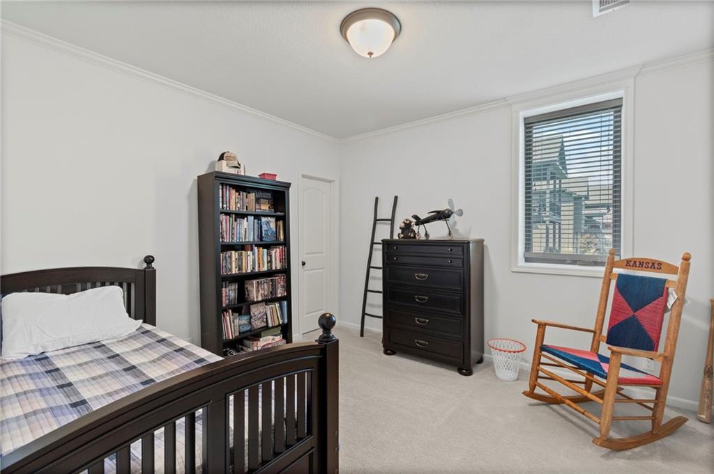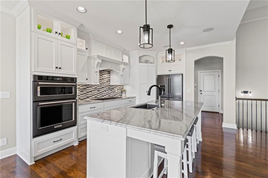 Beautiful Jefferson Reverse 1.5 by Bickimer Homes featuring plantation shutters, rich hardwoods, and stunning stonework with upgrades throughout. Step inside through the impressive double front doors into a soaring entryway with 14’ ceilings, leading into the Great Room with 12’ ceilings, crown molding, and a see-through fireplace that connects to the covered deck overlooking peaceful acreage—a perfect spot for morning coffee or evening relaxation. The kitchen has been fully refinished and shines with NEW countertops, NEW tile backsplash, NEW lighting, freshly painted cabinets with NEW hardware, NEW Kitchenaid appliances, NEW sink, NEW black stainless stove with gas cooktop and microwave/oven combo. A huge walk-in pantry for all your storage needs. The spacious Primary Suite also offers deck access and includes a gorgeous bath, massive closet, and adjoining laundry space. 4 full bedrooms plus a bonus office (converted from unfinished space in the lower level) and even a finished under-stairs play area for kids. Bathrooms feature elongated toilets and thoughtful details throughout. The lower level is designed for entertaining with built-in speakers, a large patio, and plenty of flexible storage space—perfect for a gym, hobby area, or more. The garage is a showstopper with extra finished square footage that’s heated/cooled, upgraded garage doors, NEW epoxy flooring, and fresh paint. Additional highlights include hardwood stair landings, mud bench, all casement windows, and wonderful neighborhood location close to Heritage Park. This one is PRICED TO SELL!