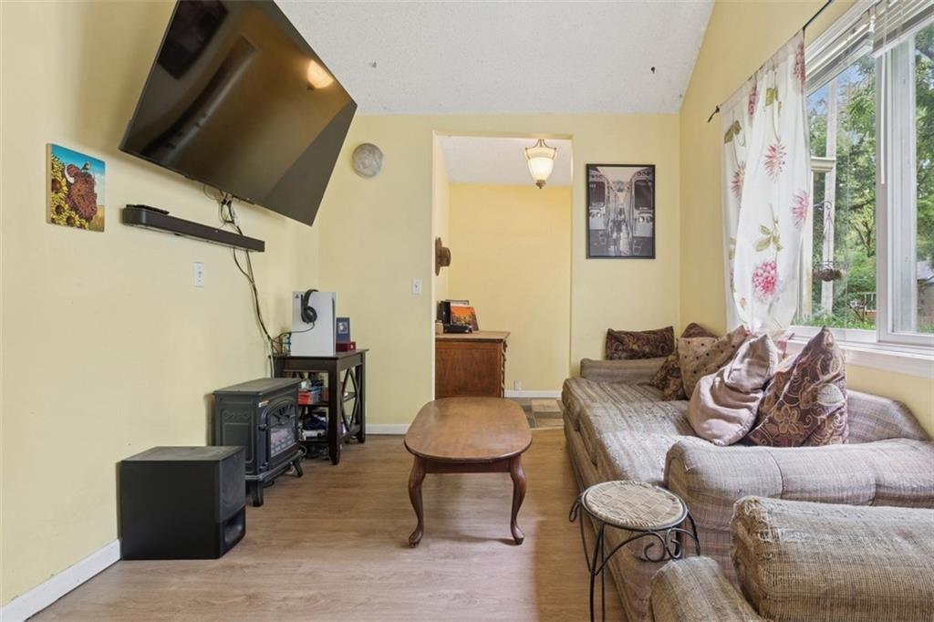 Charming light-filled cottage in North Lawrence! Main level features open floor plan with vaulted ceiling and main floor primary bedroom.Kitchen includes large island for extra storage and counter space. Freshly painted upper level makes excellent bedroom, office, or livingarea. Hardwood floors and LVP flooring. Step out to a beautiful covered deck and fenced yard with lots of gardening potential. Oversizedone-car detached garage on picturesque back alley includes additional storage. Blocks from Riverfront Park, Lawrence River Trails, andiconic Mass Street!