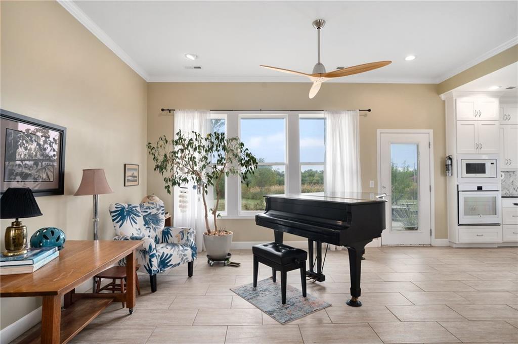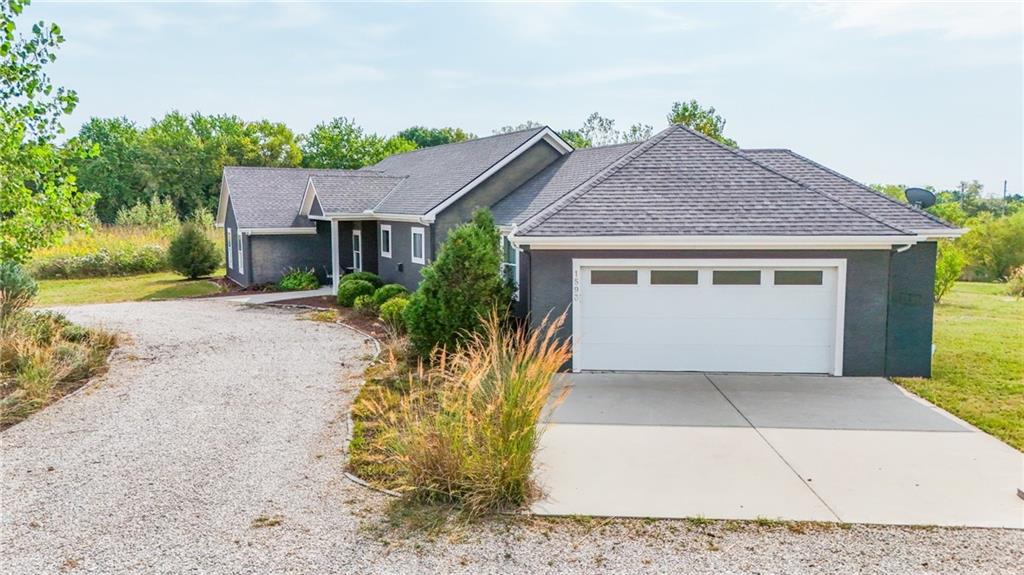Welcome to Prairie Paradise! An exceptional, custom built, ranch style home with main-level living tucked away on 5 acres of serene countryside. This beautiful home features 4 spacious bedrooms, 2.5 bathrooms, a sunroom, sitting room, plus so much more!! As you step into the entryway, you are greeted with an open floorplan design, surrounded by large picture windows flooded with natural light & exceptional views. The spacious living room showcases a fireplace and beautiful built-ins, as well as an additional gathering space perfect for a piano, added seating, or area to entertain. The dining room, complete with a serving area/coffee bar, opens to the stunning kitchen with beautiful countertops and backsplash, a generous island for culinary space & seating for four, plus a huge walk-in pantry. Retreat to the private primary suite offering both comfort and relaxation, large windows, spacious walk-in closet, and access into the laundry area. Relax in the adjacent sunroom with your morning coffee or in the evening watching nature. Two additional bedrooms share a sitting area, perfect for guests, along with a jack and jill bathroom with hallway access to the 4th bedroom. Let's not forget the generous closet space, garage storm shelter, solar panels, geothermal, and radiant heat flooring. Step outside onto the peaceful back porch perfect for relaxing after a long day, or take a nature walk to the private pond. For those who love to entertain, explore, or retreat to a private & peaceful country lifestyle, this property has it all, while still being within reach of amenities in quaint downtown Baldwin City, and within an easy commute to KC, Lawrence, Ottawa, KC and surrounding.