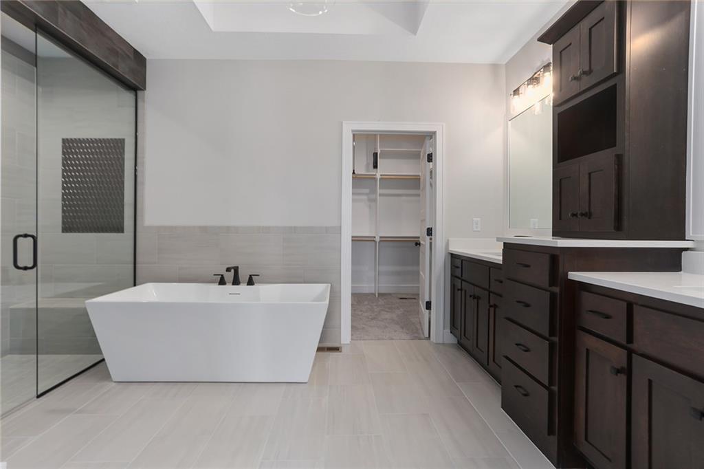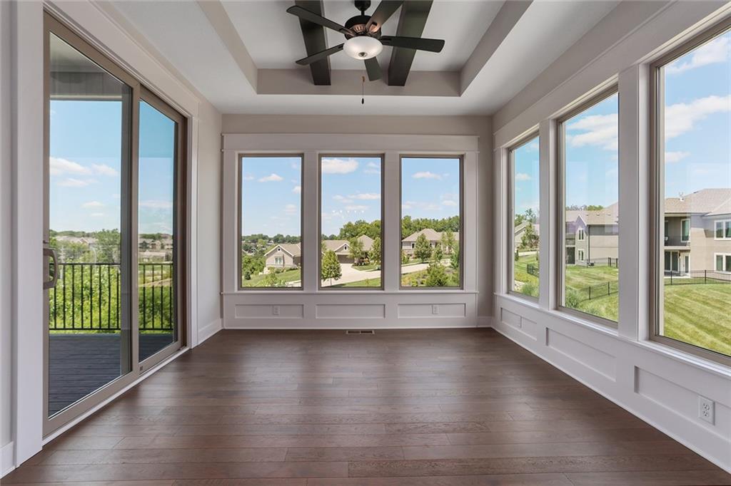 Welcome to an UPGRADED Catalina with SUNROOM by Crestwood Custom Homes at maintenance-provided Crestwood Village (the best location for new construction in town). You do not want to miss these views! This home is a 4BR, 3BATH reverse 1.5 story with a 3 CAR GARAGE! Upon entry you will notice 11' ceilings in the entry and great room, walls of windows, and the PERFECT spot in the sunroom to sit, relax, enjoy coffee or read a book. The highlights of the kitchen include a kitchen island, gas stove, quartz counters, gooseneck faucet, and a walk-in pantry. Elevated dining area features a wall bump out, custom cabinetry and quartz counters, amplifying the look of the entire space. You will find beautiful hardwood floors throughout the main living area enhanced by extensive trim detail and a cozy, gas fireplace. The owner suite and bath are showstoppers. Large, zero-entry, walk-in shower and free standing tub makes this room feel like a spa retreat. Huge walk-in closet with tiered, off-season storage is adjacent to the laundry room, perfect design for ease and convenience. The finished lower level is ideal for entertaining with large family room, walk-up bar with mini fridge, sink and quartz counter top, 2 additional bedrooms, and an additional full bath (bonus space under the sunroom). Drink your morning coffee in the sunroom or on the covered deck while looking at the beautiful views. Additional outdoor entertaining area on the lower, covered deck outside the walkout, finished basement. Crestwood Village is a cascading, beautiful neighborhood with vibrant landscaping - come out and see for yourself! Close to paved walking/biking trails, restaurants, shops, grocery stores, medical facilities and highways. Your time is now your own - maintenance provided community $250/month - no more lawn work, snow removal, etc. **Home is at cabinet/trim stage. PHOTOS OF A SIMILAR MODEL** Crestwood Village allows fences.