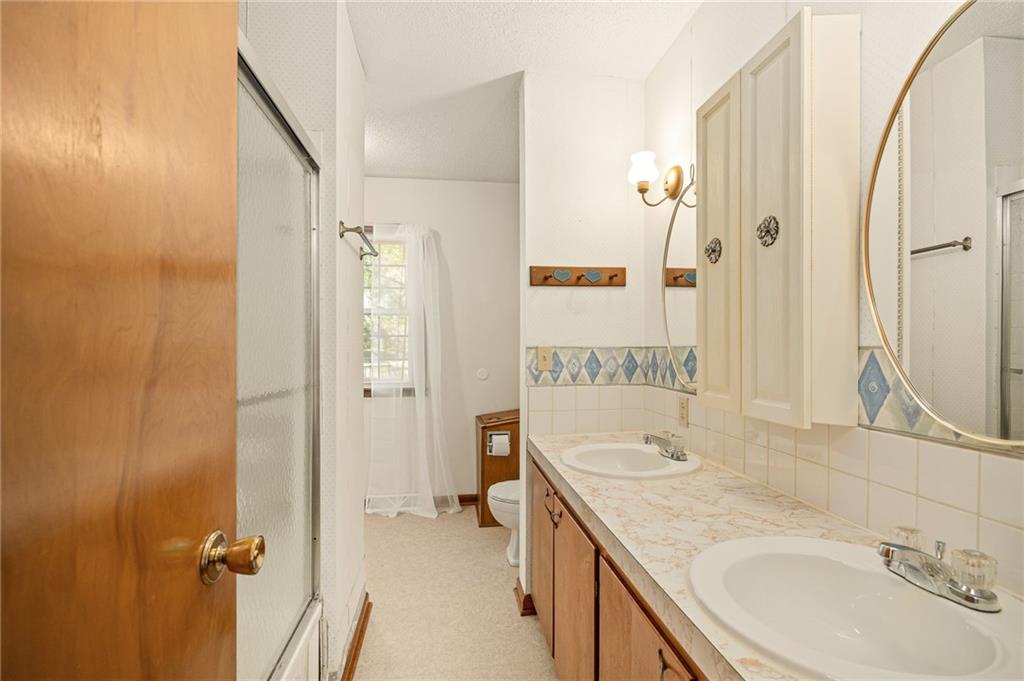 Discover exceptional indoor and outdoor living with this spacious 4-bedroom, 2-bath, home set on a beautiful half-acre lot. Enjoy the welcoming double front doors, two-car garage, and a lower-level walkout for easy access. The upper level features an open-concept kitchen and dining area that flows seamlessly into the living space. On this level, you’ll find three bedrooms, including a primary suite with an attached bath, featuring double sinks and mirrors for added convenience. The lower level offers another bedroom, bath, and versatile living space—ideal for guests, a kids’ suite, home office, or even potential rental income. Additional highlights include fireplaces on both levels with brick surrounds, built-in bookcases, a mix of carpet and hardwood flooring, and abundant natural light throughout. Outside, the paved driveway with an extra parking area provides plenty of off-street parking. Relax on the back deck or enjoy the large yard—perfect for play, gardening, or adding future outdoor features. This home is well-maintained, move-in ready, and offers room to grow in a peaceful neighborhood setting. Note: Some photos may be virtually staged or digitally enhanced to illustrate the home’s potential. Actual features and finishes may vary.