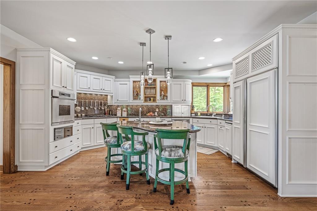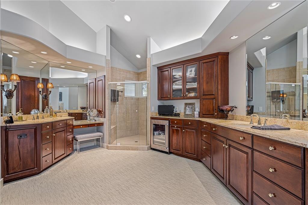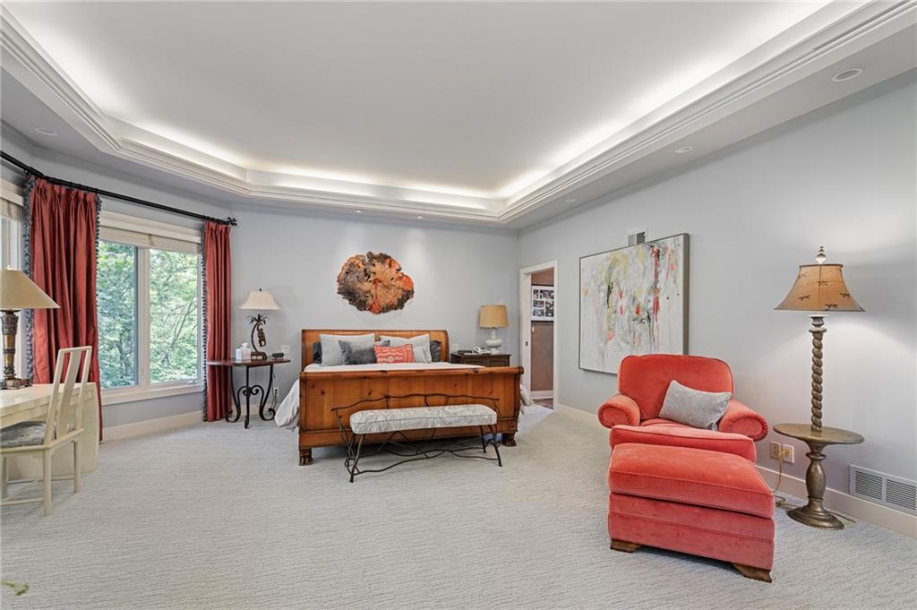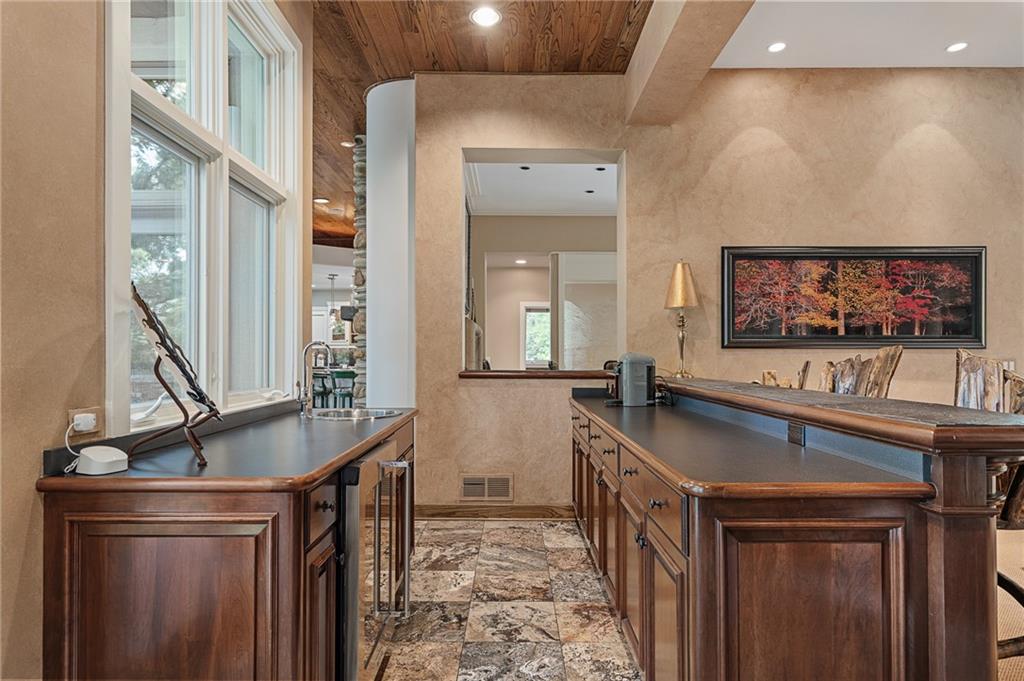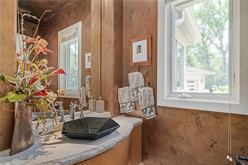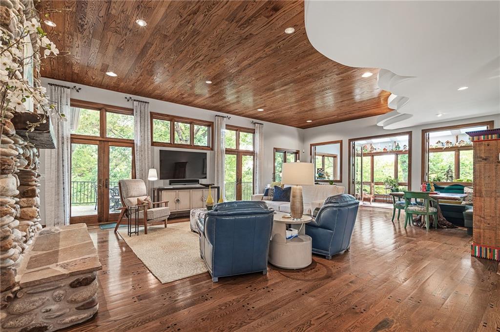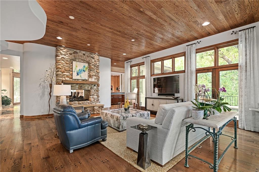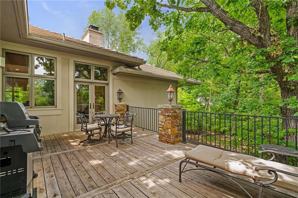 Welcome to an exquisite contemporary residence nestled in prestigious Hazelwood in Leawood. This remarkable home offers an impressive 7,085 square feet of sophisticated living space, designed to cater to modern lifestyles. Upon entering, you’ll be captivated by the expansive open-plan living areas.The home features four generously sized bedrooms, each with its own en-suite bathroom, ensuring privacy and convenience. The main floor primary suite is a tranquil sanctuary, offering a spacious layout and a beautiful view of the treed yard. The primary bathroom features high-end finishes, double vanities, large shower and separate tub and TWO walk-in closets. The kitchen is a culinary enthusiast's dream, equipped with sleek countertops, premium appliances, and ample storage. It seamlessly connects to a spacious dining area, ideal for hosting intimate dinners or larger gatherings. Ample natural light floods the interior, highlighting the elegant design elements and tasteful finishes throughout. The large great room, featuring a massive stone fireplace, provides a perfect spot for relaxation and socializing. Adjacent to the great room, you'll find a light-filled atrium, including a grill! A formal living space, also featuring a marble fireplace, includes a custom bar. The beautiful deck, accessible from both the living room and great room, allows for viewing of the firepit area and lots of nature. The lower level encompasses three additional bedrooms, all en-suite, a large office with fireplace, spacious family room, gaming area, non-confirming fifth bedroom. Situated on a large lot, the outdoor space is equally impressive, offering lush landscaping and ample room for outdoor activities or future customization. This is a one and a half acre lot - please see county map for description. This home combines luxury, functionality, and modern design, creating the perfect setting for your next chapter. Experience the epitome of sophisticated living at this stunning Leawood home.