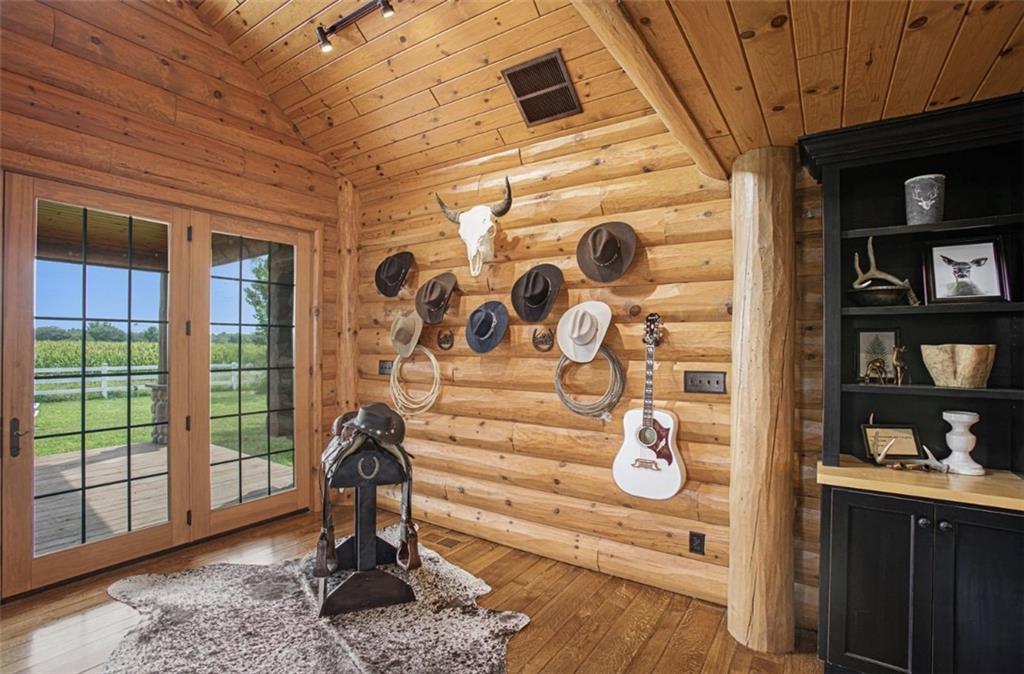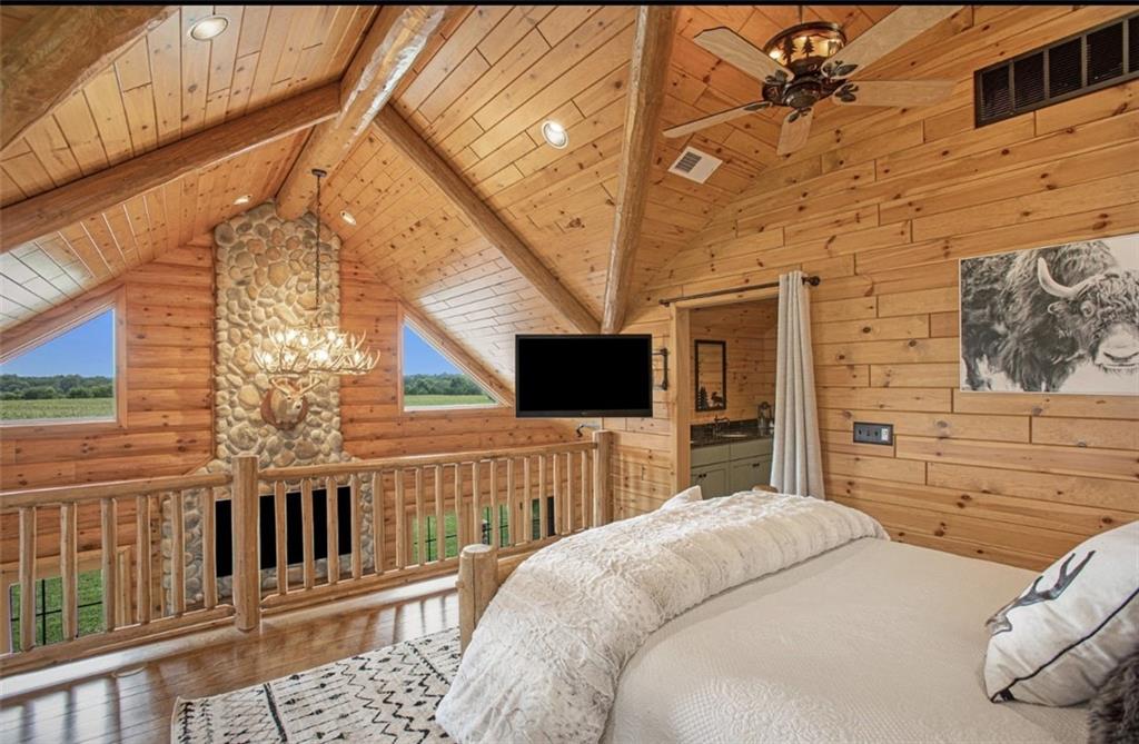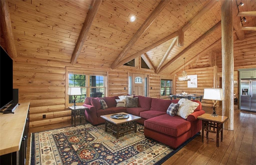 Discover the charm of rustic living at 19295 A Highway 52 in Pleasanton, KS. This beautiful log cabin-style home is set on a picturesque 15-acre parcel, offering a perfect blend of natural beauty and modern comfort. The residence features 4 bedrooms and 3 bathrooms, spread over 3,149 square feet of living space, each corner thoughtfully designed with natural wood details and expansive windows that fill the home with light. Inside, enjoy the open-concept layout that seamlessly connects the living, dining, and kitchen areas—ideal for both everyday living and hosting gatherings. The kitchen, equipped with modern amenities, provides a functional space for culinary enthusiasts. The expansive acreage surrounding the home presents endless opportunities for outdoor enjoyment. The land has a beautiful tree line to the west, offering privacy and a sense of seclusion, yet ample open space invites recreational activities. Additional structures include a 40x56 pole barn, a 42x56 barn, and a 8x12 shed, providing versatile options for storage or hobby uses. This log cabin retreat in Pleasanton is more than just a home; it’s a lifestyle choice, inviting you to experience the tranquility and beauty of rural living with the convenience of modern amenities. Explore the potential of this unique property today.