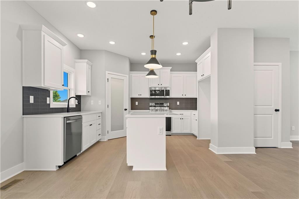 “The Carlyle", the latest innovative floorplan from Dave Richards Homebuilding, INC. The main level features a private office, open concept kitchen / family / dining area and a conveniently located half bath. You'll love the ample storage space in the U-Shaped kitchen design, which also allows for a sink with window overlooking the backyard! An island and walk in pantry complete the kitchen, which opens to the large dining area and big family room with fireplace and wall of windows offering lots of natural light. Upstairs you'll find four spacious bedrooms, including the owner's suite which features dual walk-in closets & a spacious bathroom with dual vanities. The large second full bath upstairs also boasts two vanities and shower/tub combo to accommodate your needs. Three other generously sized bedrooms finish out the upper level-- one with its own walk in closet. The walk in laundry room is also featured on the bedroom level, making that household chore as convenient as possible! Large Yard features an irrigation system, make lawn care much easier. Four Pillars offers walking trails, is serviced by the award winning Grain Valley School District, included the coveted Prairie Branch Elementary School. You're also within walking distance of Grounds Park-- which offers miles of walking/biking trails and a community lake. Exceptional quiet location, yet just minutes from the Adam's Dairy Shopping/retail corridor and easy access to I-70 for quick commuting around town. Beautiful home, fabulous community!
