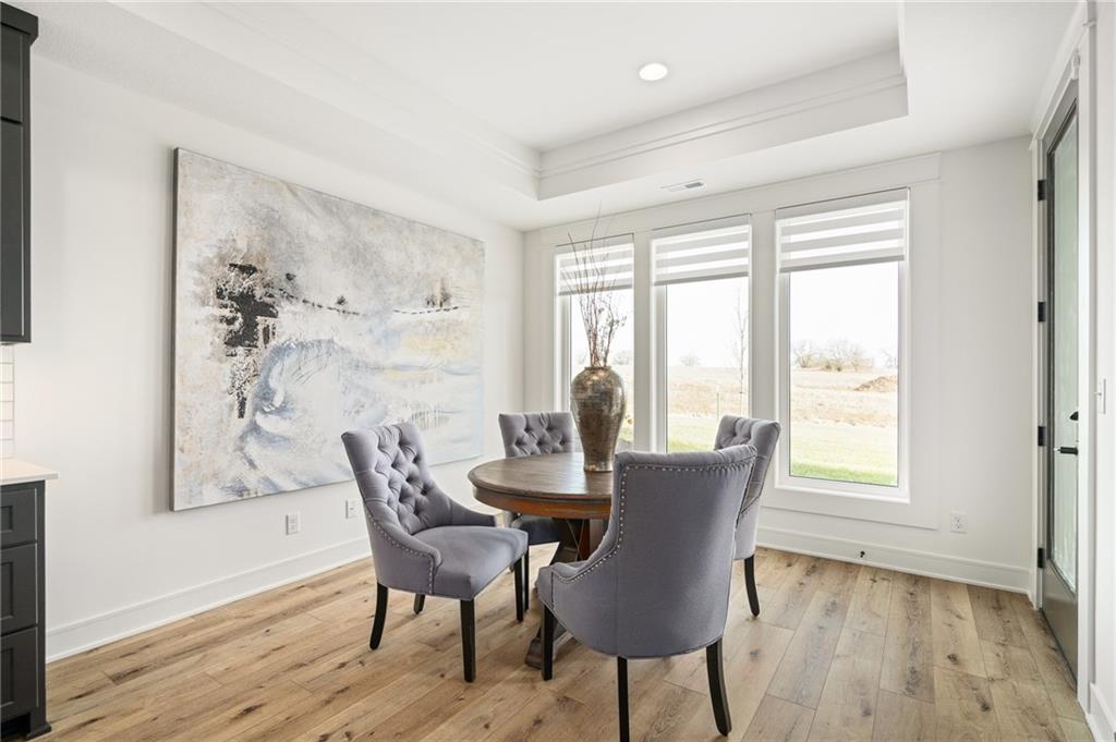 JFE Construction brings their fabulous Bayberry Rev. 1.5 sty plan to Johnson Counties newest maintenance provided community of Prairie Canyon! This beauty sits on a walkout lot with SE rear exposure backing to greenspace w/dramatic long vistas! Cathedral vaulted ceilings in the entry, Great rm & thru to the covered deck with FP. Open concept plan with Great rm., kitchen & dining all open to each other, large island & spacious pantry. Two bdrms & 2 baths on the main floor, 2 bdrms. & 1 bath down with plenty of Family & recreation space which includes a fantastic wet bar!