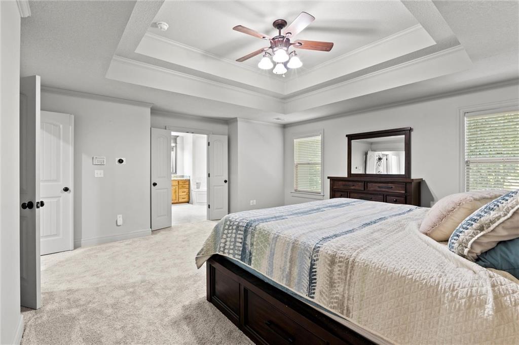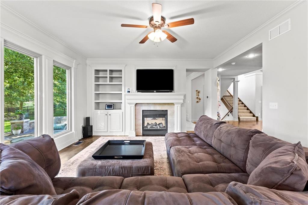 Welcome to this beautifully maintained two-story home in Coffee Creek Crossing- Overland Park. Step inside to find hardwood floors, quiet sitting area, private office, and a grand room with a see-through fireplace. The open floor plan flows into the spacious living room and an eat-in kitchen, featuring high-end stainless steel appliances, granite countertops, and a walk-in pantry. Updated windows allow abundant natural light to pour in, or step outside for private outdoor living space-relaxing backyard perfect for entertaining—with beautiful landscaping, a new patio, a built-in fire pit, and a private hot tub. Upstairs offers new carpet throughout all bedrooms, including a spacious primary suite, with convenient laundry access from the primary closet and hallway. There are three additional spacious bedrooms with generous walk in closets. A Hollywood-style bathroom connects two of the bedrooms, ensuring privacy, and the third has its own private bath. The finished lower level is multifunctional that is ideal for hosting- offering a living space, kitchenette, half bath, home gym, play area, and plenty of storage. Close to amenities, with easy access to Coffee Creek trail. Conveniently located near shopping, entertainment, near major highways, and award-winning Blue Valley Schools.
