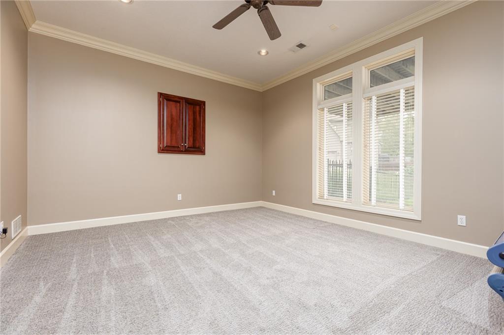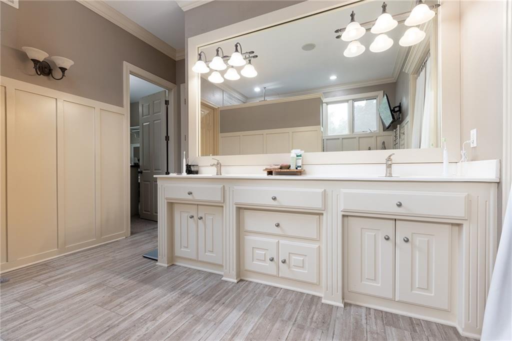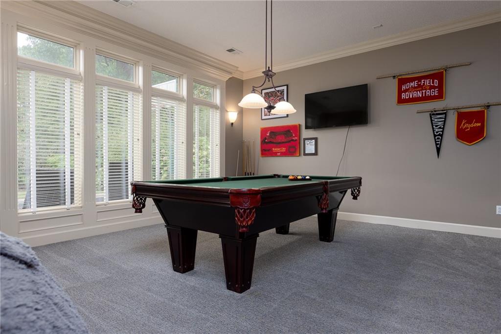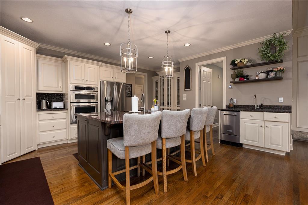 Beautiful 1.5 Story Home- This 4 bedroom, 6 bathroom home with a 3 car garage blends luxury and practicality. The spacious kitchen offers a large island, granite countertops, hardwood floors, and a gas oven & stove, opening to an office nook for convenience. Each bedroom features its own private bath, with the master suite boasting heated bathroom floors with a huge walk-in shower. The hearth room with fireplace is perfect for gathering, while built-ins and custom blinds add style and function. The finished basement includes a full bar, lots of areas to entertain, catch a game, or host a party, plus a SUSPENDED GARAGE for extra storage. Lower level also includes a bonus room that could be converted to a 5th bedroom, workout room, or 2nd office. This home has many unique touches and interesting details that you won't find in other homes, all set on a large, meticulously landscaped private lot. Home's exterior oozes curb appeal and invites you in. Thoughtful touches like dual staircase, a doggie bath in the laundry room, and oversized bedrooms complete this exceptional home. Picture yourself in this elegant home and popular community!