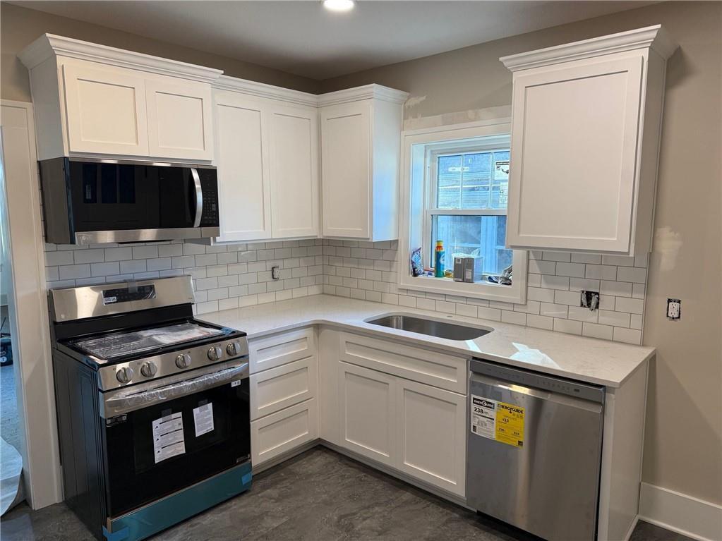 Updated 2 Bed / 1 Bath Home – Convenient Location! • 2024 updates: insulated vinyl siding, seamless gutters, energy-efficient vinyl windows • New kitchen with quartz countertops & stainless steel appliances • Front-loading washer & dryer included • New gas furnace & central air conditioning • Refinished original hardwood floors • Updated bathroom with tile shower • Off-street parking • Great location near the college, Fairview Golf Course & Bartlett Park Move-in ready with charm, efficiency, and modern comfort!
