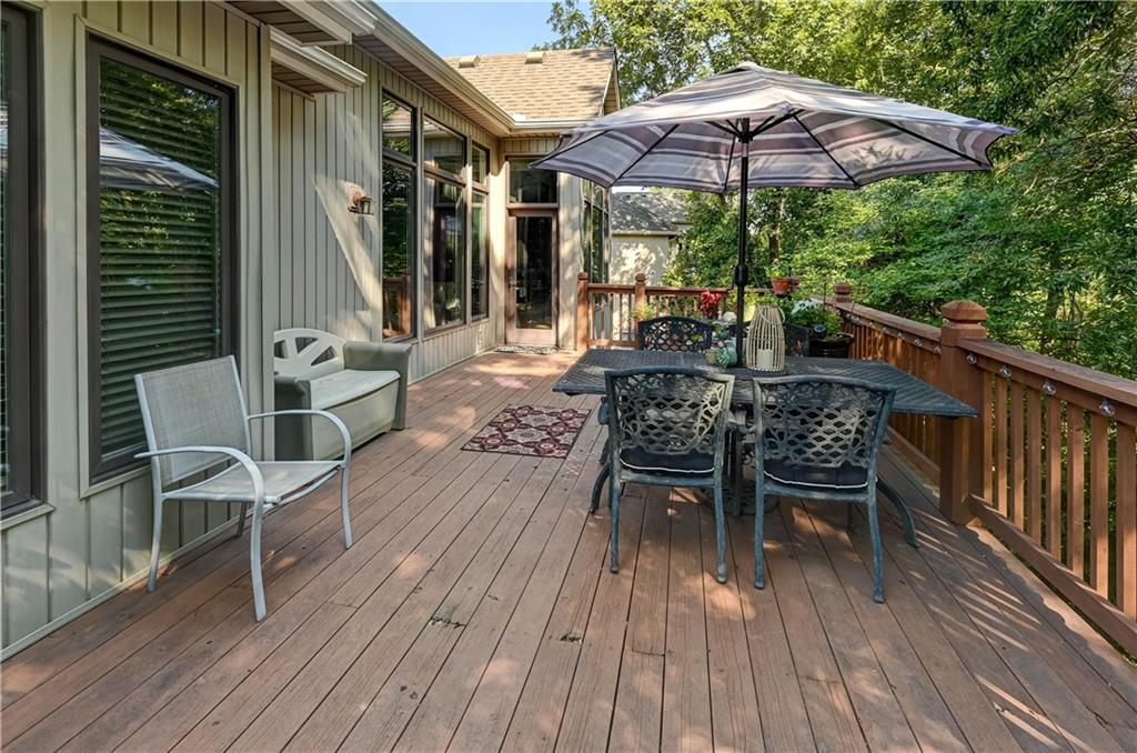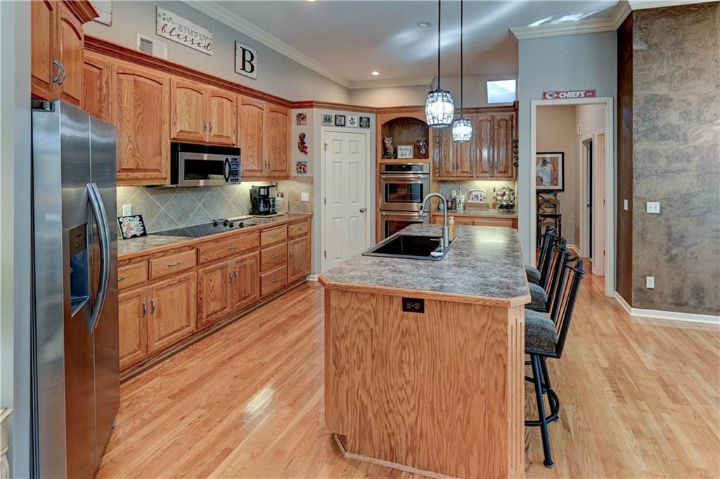 Welcome to 7835 N. Cosby Ave! Enjoy Main Level Living In this Stunning Reverse 1.5 Sty Home! 3 Bd-3 Full Bath-2 Half Bath-3-Car Garage Beauty! Step into seamless open concept living where living, kitchen & dining flow effortlessly together to create a spacious and inviting heart of the home. Wide entry to living room showcasing the gas fireplace, custom built-in bookshelves & crown molding. Big kitchen equipped with huge island, double oven, composite sink, loads of cabinets & walk-in pantry. All immersed in natural light. Relaxing very spacious primary bedroom leads to en suite bathroom & 11'x13' walk-in closet. Bathroom features double vanity, corner whirlpool tub, walk-in shower & tile flooring. Both levels of the home overlook the serene treed backyard and massive 15’x30’ deck-perfect for relaxing and entertaining. 3-Car garage enters to a drop zone and great office area featuring a built-in desk & custom cabinets. This leads to a laundry room & half bath. Walkout lower level boasts cozy welcoming open family room w/gas fireplace, custom bookshelves & wet bar w/mini fridge, custom cabinets, half bath & ample storage room. Also, 2 generous bedrooms each with its own en suite full bathroom & big walk-in closet. Enjoy Embassy Park amenities-swimming pool, tennis courts, play area & clubhouse. All this with a very sought after & convenient Platte County location and all that it offers. Top Rated Park Hill Schools. Zona Rosa shopping and restaurants nearby. Just 14 minutes from KCI Airport.