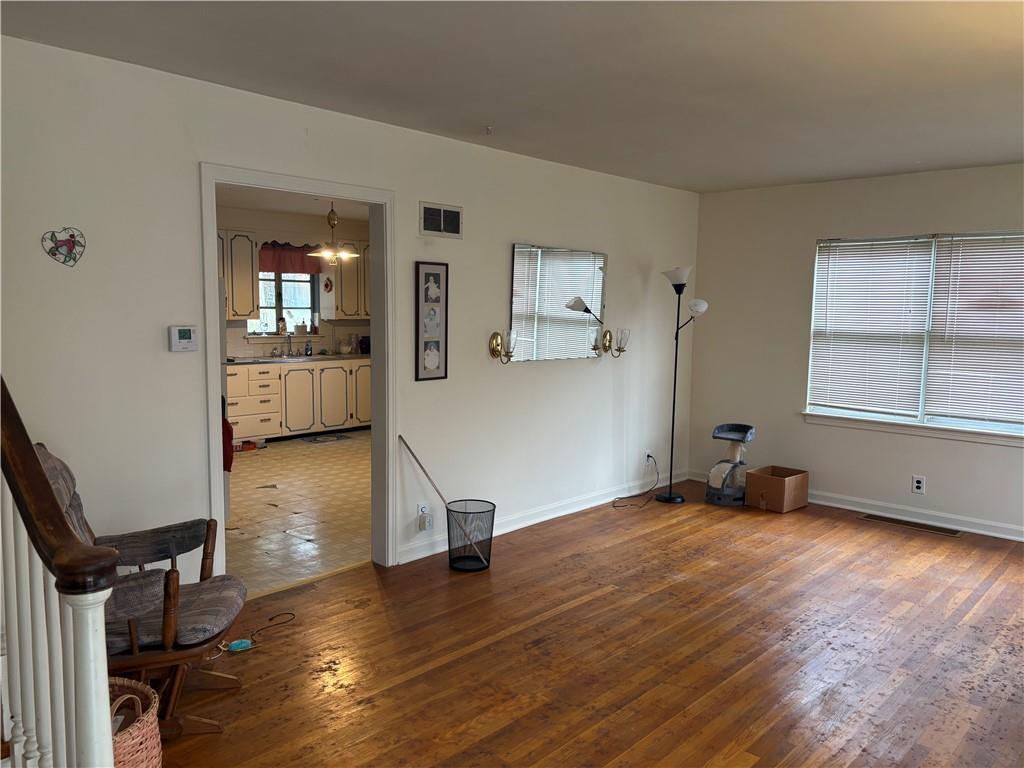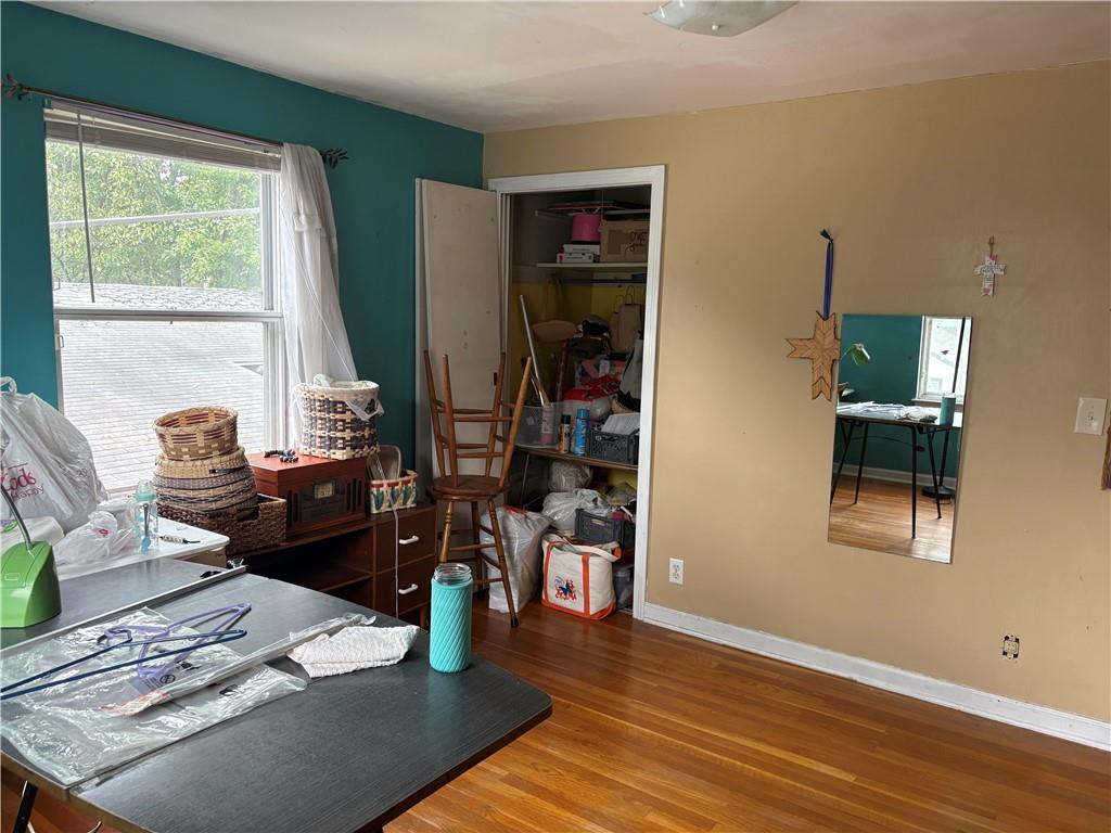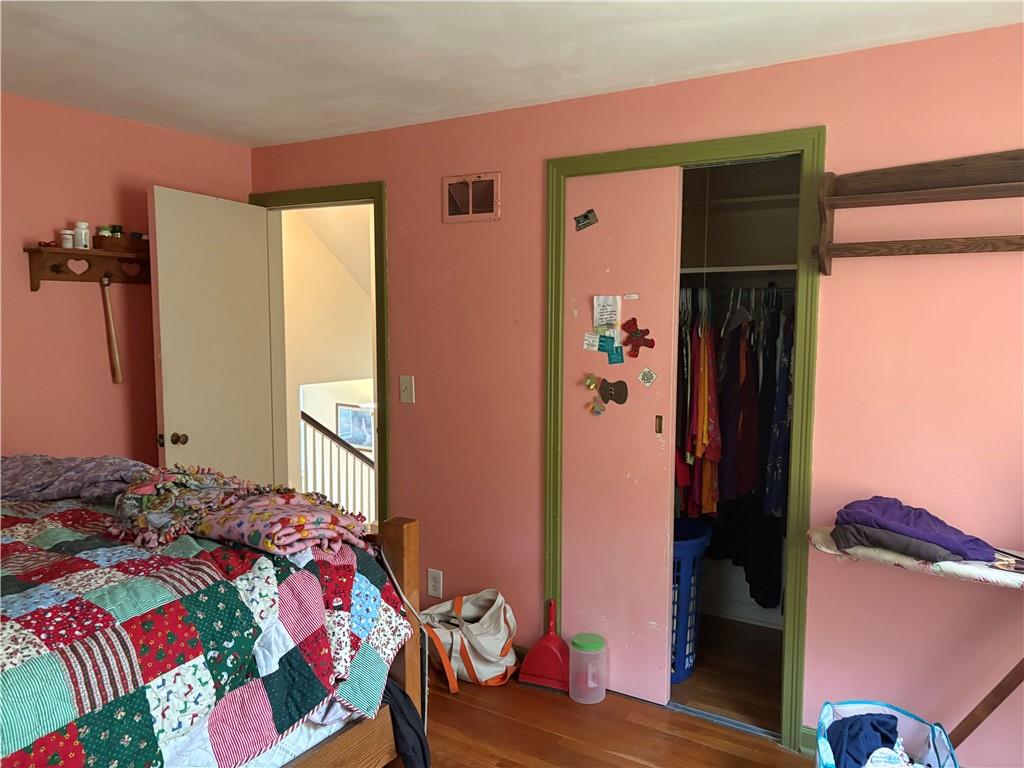 Split-level home offering excellent potential. Step inside to discover freshly painted white walls and hardwood floors throughout most of the home. Functional layout includes an attached one-car garage and designated mudroom. Upstairs features 2 bedrooms, full bathroom and a bonus non-conforming bedroom perfect for an office or playroom. Extra storage space in unfinished attic. The fully fenced yard is shaded by mature trees. A solid opportunity for buyers seeking value with room to grow. Home is being sold in as-is condition.
