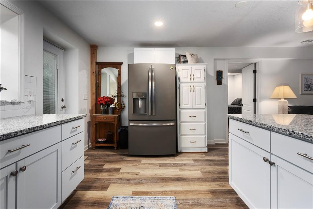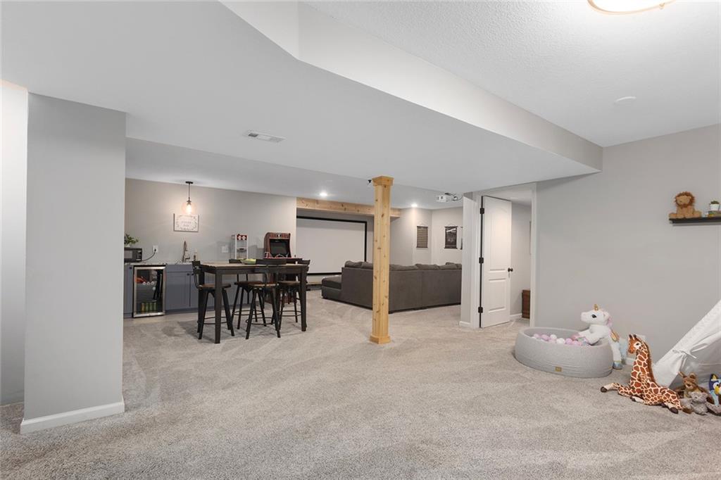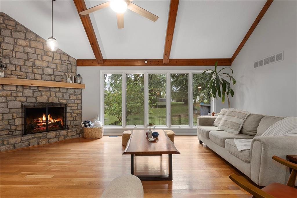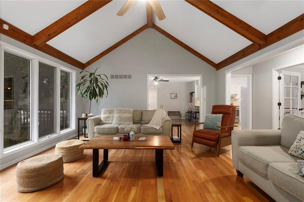 This charming 5-bedroom, 3.5-bathroom home in Lee's Summit offers more than meets the eye—boasting over 4,500 square feet of living space in the highly desirable Blue Springs South school district. Step inside to find beautiful wood floors, vaulted ceilings, granite countertops, and an abundance of natural light throughout. The open-concept main level features a large kitchen, expansive living room with fireplace, and a huge master suite that’s sure to impress. The walk-out lower level is truly like having a second home! Complete with a mother-in-law suite featuring its own full kitchen, living room, bedroom, and bathroom, it also includes a guest bedroom, rec room with wet bar, and a projector-ready movie area—perfect for entertaining family and friends. Outside, this home sits on over a half-acre treed lot with a partially fenced backyard, deck, and a utility shed for extra storage. The circle drive offers plenty of parking, while the thoughtful touches—like a custom dog door leading to a ramped dog house off the laundry room—make it unique and functional for every lifestyle. This home truly has it all: space, updates, character, and a one-of-a-kind layout ready to fit your family’s needs. Don’t miss your chance to make it yours!