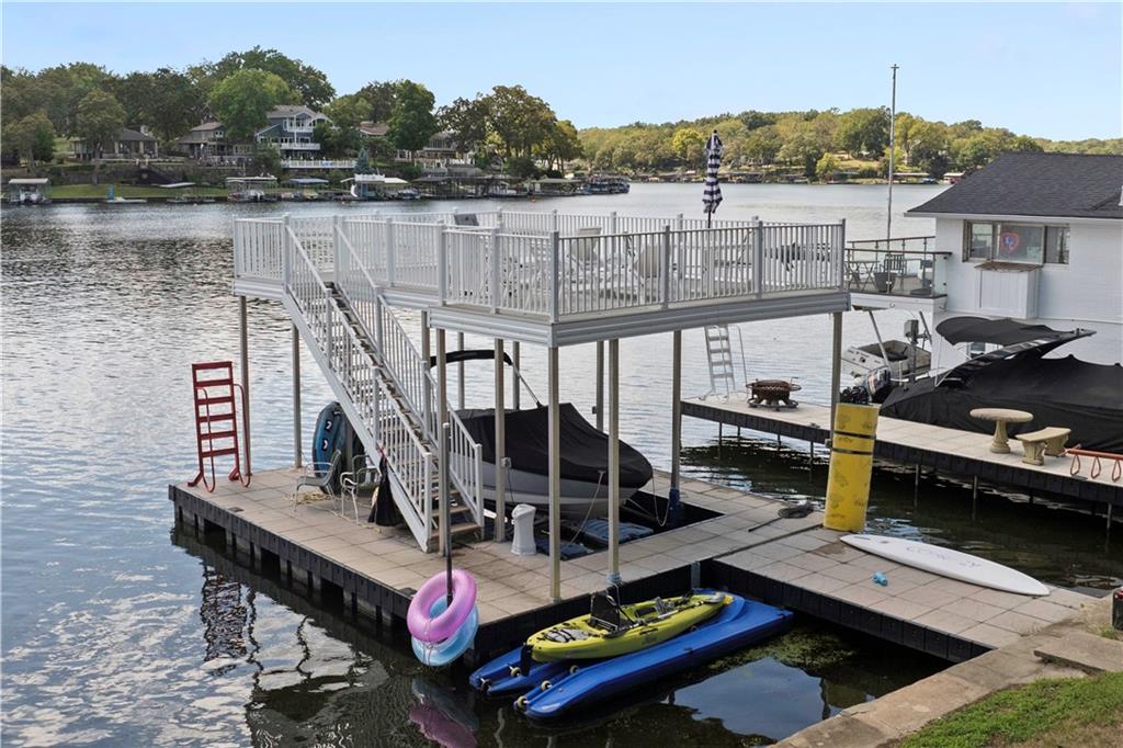 Lovely and welcoming lake home with main body views! This beautifully updated property offers ample living space and stunning lake views. Recent upgrades include new exterior and interior paint, a new dishwasher, new windows, a new roof, new flooring throughout, a new deck, a new double-tier dock with a sunning platform above. The large, open kitchen and dining area overlook the inviting living room with fireplace, perfect for entertaining or endless gazing at the scenic views. The main-level bedroom features an on-suite bath and private deck, while the primary loft bedroom provides additional breathtaking lake views. The generously sized second-level bedrooms are ideal for bunk rooms, perfect for family and friends to visit. The third bedroom has its own private stairway and bath, offering additional privacy for guests. Outside spaces include a spacious upper deck and a large lower-level patio, with easy access to the dock in deep water depth. An outside walkway ensures convenient lake access for guests. Home also features two car attached garage with spacious driveway for overflow and visitor parking. This home is ideal for a primary residence or second home and is move-in ready for lakeside enjoyment all year around!
