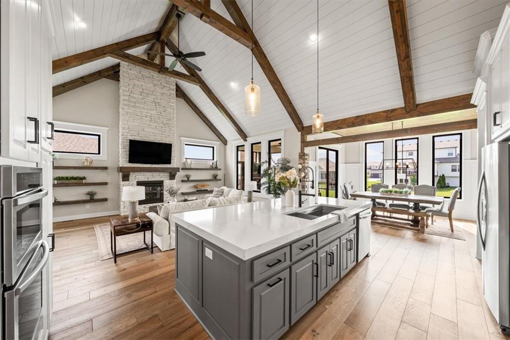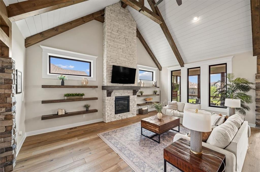SELLER OFFERING $10K CREDIT to go towards buyers closing costs or RATE BUY DOWN!!! You can still move in before the holidays!!! MORE UPGRADES THAN NEW CONSTRUCTION. BUY NOW, MOVE IN TODAY, HOST TOMORROW. Why wait and pay more for new construction when this home delivers so much more. Enjoy custom window shades, a fully fenced yard, multiple outdoor patios with a firepit, and a screened-in composite deck, all on a quiet cul-de-sac with a large lot. Step inside this reverse one and a half story walkout in sought-after Winterset Valley, where upscale design meets everyday comfort. A dramatic stone-column entry and vaulted wood-beamed ceilings open to a bright, airy floor plan anchored by a striking stone fireplace. The gourmet kitchen features thick quartz countertops, a walk-in prep pantry, built-in workstation, custom mudroom, and designer finishes throughout. The main-level primary suite is a private retreat with vaulted ceilings, a spa-inspired bath, freestanding soaker tub, and a show-stopping walk-in closet. The lower level offers three additional bedrooms, a full bar, and a versatile flex space with sliding doors that works beautifully as a guest suite, gym, or home office. Outdoor living is unmatched with a covered screened-in deck featuring a built-in fireplace, a custom lower patio with firepit, and a spacious yard designed for entertaining. Located minutes from Longview Lake, golf, dining, shops, and the Rock Island Trail, with access to award-winning Lee’s Summit schools. Better than new, fully upgraded, move-in ready, and now priced to sell — this is the one you have been waiting for.