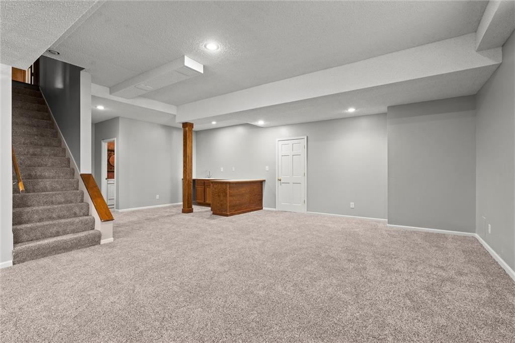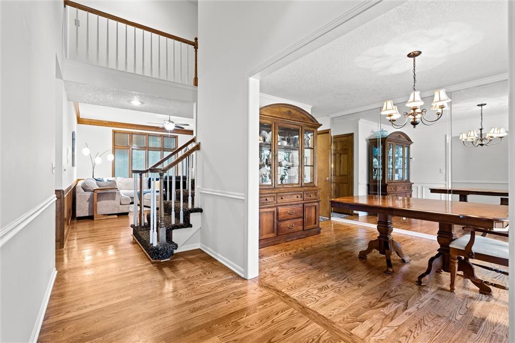 Beautiful & sought-after 1.5 story home with main floor primary suite! Fantastic location, curb appeal, large room sizes, immaculately maintained, brand new $50k composite deck & brand name fiber cement siding with fresh exterior paint - this is checking all the boxes! The entryway with vaulted ceiling creates a sense of grandeur the moment you walk in, but the warm wood floors and cozy accents instill an undeniable feeling of home. The spacious great room with floor-to-ceiling windows and huge brick fireplace is perfect for everything from entertaining company to curling up with your favorite movie. Around the corner the large hearth room, dining area and kitchen are sure to be the site of many wonderful memories around favorite meals, not to mention the large formal dining room. A coveted main floor primary suite with ensuite bath is complete with a walk-in closet, huge soaking tub, separate shower, and double vanity. The main floor office is also perfect for anyone working from home, or could be used as a playroom, sitting room or additional non-conforming bedroom. Upstairs, three more generously sized bedrooms and two full baths ensure plenty of space for family or guests. The sprawling, finished basement provides endless options for enjoyment. Welcome home!