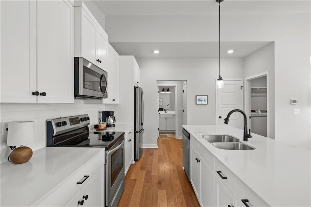 This quintessential and charming reverse 1.5-story home in Southpointe feels practically brand new at only 2 years old! The main floor features an open-concept kitchen, dining area, and living room. The kitchen includes stainless steel appliances, while modern fixtures throughout the home add a fresh, contemporary touch. Two bedrooms and the laundry room are on the main level. A spacious finished basement offers another bedroom plus a versatile non-conforming room (with closet) ideal for an office, guest room, or hobby space. The open area provides plenty of room for movie nights, game days, or relaxing with family and friends. Upgraded thermal windows throughout the home, valued at $12,000, come with a transferrable lifetime warranty for energy efficiency and peace of mind. The sellers also have a 2-10 Home Buyers Warranty in place, which provides coverage for qualified structural defects through 2033 (see attachment in supplements). Outside, a patio and fenced backyard offer great space for pets, grilling, or unwinding outdoors. Lovingly cared for and still like new, this home delivers modern comfort and style. Southpointe residents also enjoy a clubhouse, a beautiful pool, and a play area — fun and relaxation for year round!