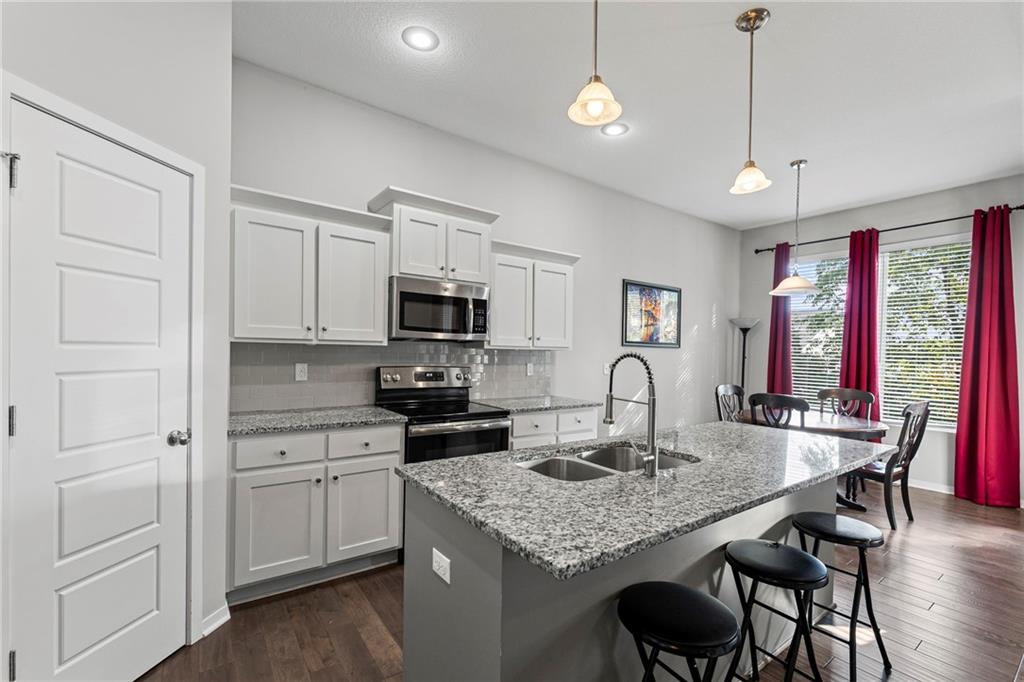 Your First Step Inside Will Make You Want To Call It Home! Enjoy the comfort and elegance of living in this gorgeous house and step into the spacious open floor plan with over 3000 finished square feet that offers an inviting warm atmosphere for relaxing and entertaining. The fabulous hardwood flooring, high soaring ceilings and exquisite luxury finishes add a touch of sophistication providing warmth and charm to this awesome home. This terrific 5 bedroom house along with 4 full bathrooms provides significant space for accommodating large families, multi-generational living and guests, while also providing versatile rooms for home offices, hobby areas, home gyms. The spectacular kitchen and adjoining dining area boasts a tray ceiling, granite countertops, hardwoods, lots of painted cabinets, s/s appliances, 7’ breakfast bar, w/i pantry along with access to wood deck for additional relaxing and entertaining. Impressive living room includes tray ceiling, c/fan, hardwoods, wall of windows with lots of natural light. The primary bedroom/bathroom suite showcases an oasis retreat with tray ceiling, carpeting, c/fan along with d/v, ceramic tile, shower, w/i closet. Two more roomy secondary bedrooms, one stylish full bathroom, laundry room all on the main level for the ultimate convenience and comfort plus a convenient boot bench area just inside the entry way off the garage. Finished walkout basement includes an awesome 16x23 family room with access to 16x18 patio and two more roomy secondary bedrooms includes two en-suite full bathrooms, plus a bonus 10x18 theater room with 6 theater seats and 75" tv screen, along with an adjoining snack bar/entertainment room. This captivating home also spotlights several fantastic upgrades including new main level carpeting (2025), new dishwater (2025), roof/gutters (2024), refrigerator (2023), finished basement (2021), all kitchen appliances staying too, incredible location, amazing curb appeal. Make This Dream Home Yours!!