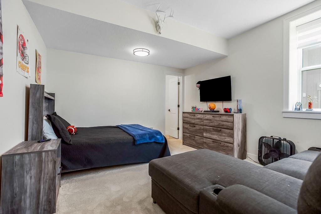 Why wait to build? This better-than-new 4-bedroom, 4-bathroom reverse 1.5 story home is perfectly situated on a quiet cul-de-sac lot with beautiful lake views, a 3 car garage and high-end upgrades throughout. Step inside to a bright, wide-open main floor filled with natural light, custom Hunter Douglas zebra shades, and a seamless flow from the spacious great room with fireplace to the chef-inspired kitchen. The kitchen boasts a large center island, quartz countertops, walk-in pantry, and abundant cabinetry—perfect for entertaining or everyday living. Just off the kitchen, you'll find a laundry room with built-ins and a utility sink for added convenience. A mudroom off the garage adds both function and style. Enjoy peaceful lake views from the covered, screened-in porch, accessible from both the kitchen and the primary suite. The luxurious primary retreat features a spa-like ensuite with a soaker tub, walk-in shower with 2 shower heads, and two large walk-in closets. Head downstairs to the fully finished walk-out basement, where you’ll find a wet bar with granite countertops, a spacious recreation room, and a bonus room currently used as a home gym. Step outside to a large patio and fully fenced backyard, ideal for relaxing, entertaining, or play. This home truly has it all—premium finishes, custom touches, lake views, and a prime location on a quiet cul-de-sac. Move right in and enjoy the lifestyle you’ve been waiting for!
