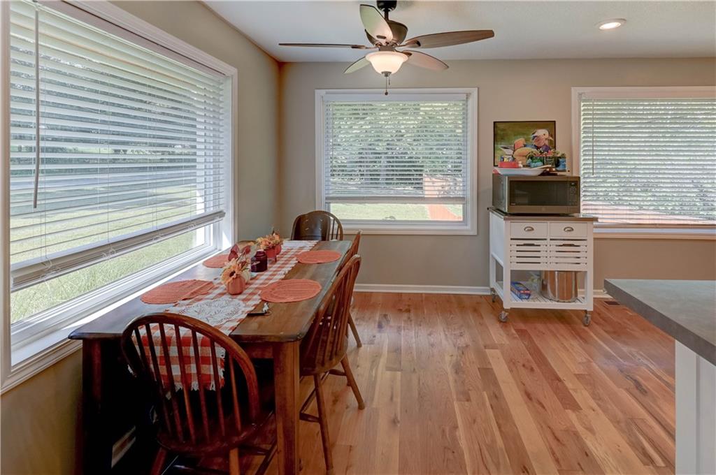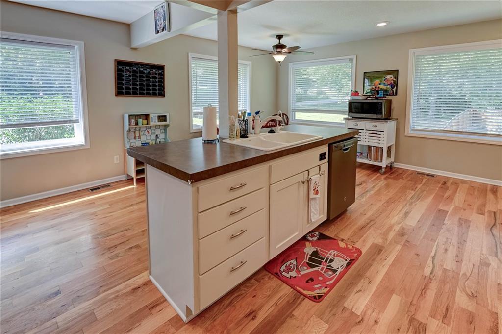 Fall in love with this stunning open-concept home offering convenient main-level living! The updated kitchen features ample cabinet space, while the spacious, modern bathrooms provide comfort and style. The finished basement adds extra flexibility for living or entertaining. New roof and gutters completed in 2024. This home is packed with recent updates that will save you money, including a new HVAC system (installed just 4 years ago), and new vinyl plank flooring. Enjoy your evenings in the screened-in porch overlooking a huge backyard complete with a newer privacy fence and fruit-bearing apple trees. Inside, large windows fill the home with abundant natural light. The lower-level room is already sheetrocked and could easily be finished as a 4th bedroom. Fantastic location—just 5 minutes from The Legends, I-70, and I-435, offering quick and easy access to anywhere in the city!