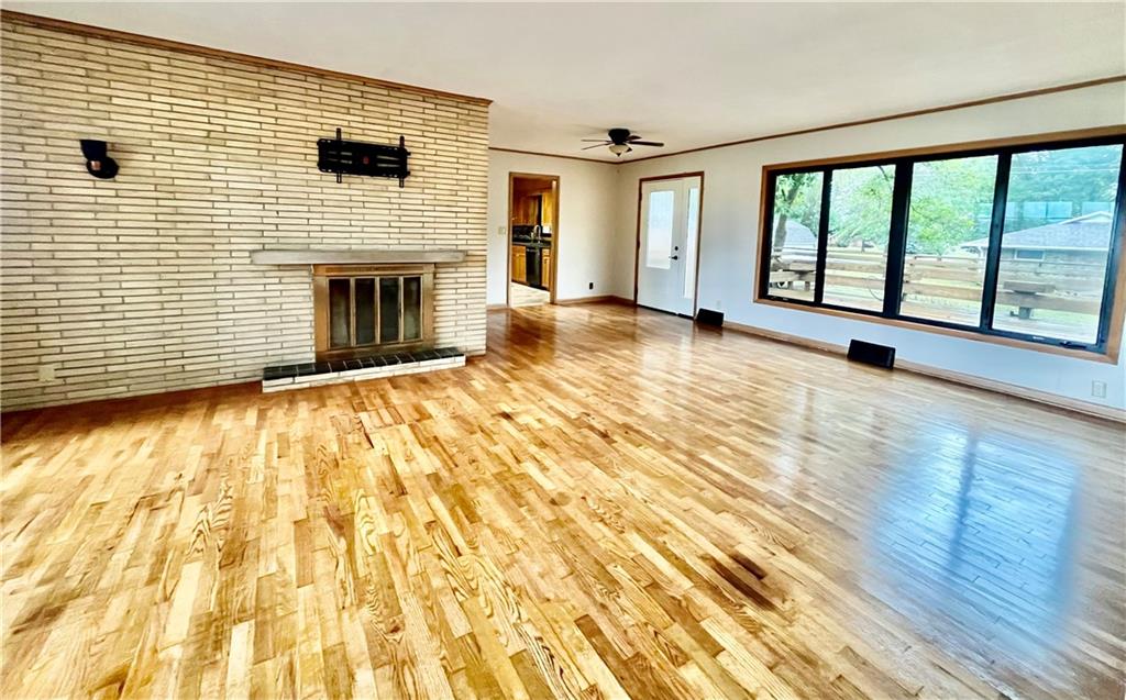 Tucked away on a peaceful and expansive .77-acre lot, this warm and welcoming 3-bedroom, 2.5-bath brick ranch has all the charm of a classic home with room to make it your own. Step inside to find rich wood floors throughout and a large, light-filled living room with a beautiful brick fireplace—the perfect spot to curl up with a blanket on chilly evenings. There's also a cozy great room with even more space to relax, play, or entertain. Walk out the back door in the living room to the large deck overlooking the fenced backyard. Whether you're enjoying a quiet morning coffee or hosting a weekend BBQ, this space feels like home. Downstairs, a full unfinished walk-out basement offers endless possibilities—extra living space, a workshop, a game room, or simply tons of storage. Out front, a charming brick patio area is perfect for evening fires and fall gatherings, and the machine shed is a great bonus for projects, tools, or hobbies. This home has charm and room to grow!
