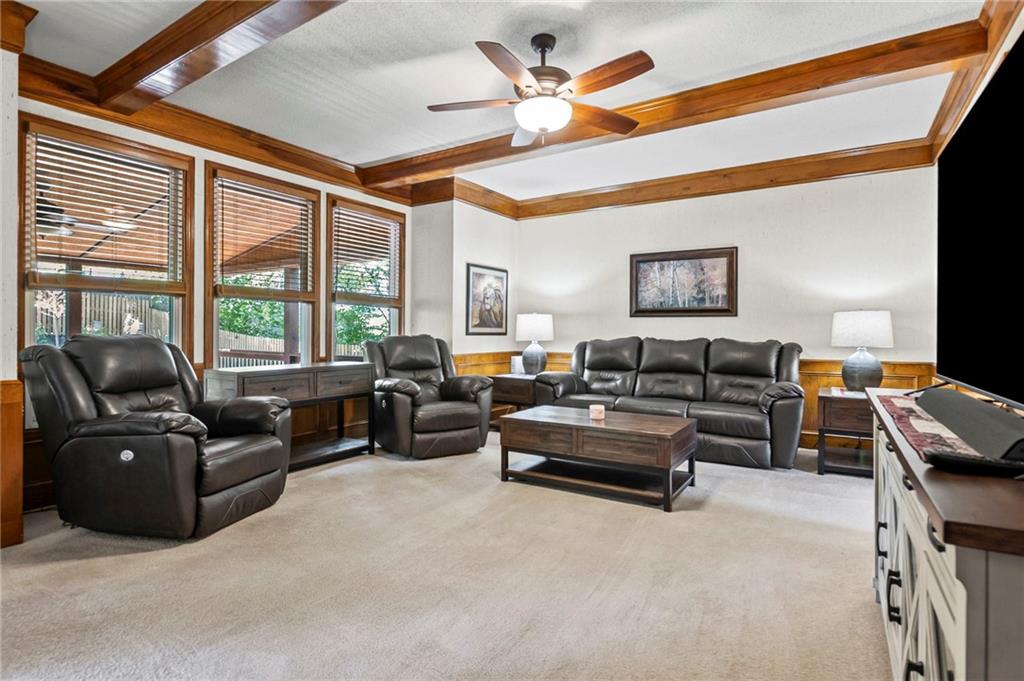 Beautifully Maintained 2-Story in Creekside! Tucked away on a quiet cul-de-sac in popular Creekside, this stunning 4-bedroom, 3.5-bath home offers an incredible blend of updates, space, and lifestyle. The private backyard is a showstopper with mature trees, a large covered deck, patio, sprinkler system, and new fencing—perfect for entertaining or relaxing outdoors. Inside, you’ll love the updated hearth room and kitchen, featuring newer stainless appliances, quartz countertops, custom tile backsplash, and gorgeous hardwood floors. The main level also includes a formal dining room, spacious living room with fireplace, and a dedicated home office. The luxurious primary suite has hardwood flooring, while the remodeled bath boasts heated tile floors, a walk-in shower, and whirlpool tub. Every bedroom has access to a bathroom—one with a private en-suite, and two connected by a Jack & Jill. The finished basement adds even more living space with a large family/rec room, bonus room/home gym, and plenty of storage. This home is truly move-in ready with all the big-ticket updates already done: windows, New zoned HVAC, interior & exterior paint. Plus, Creekside offers a neighborhood pool, trails, and park—all just a short walk away. Located in top-rated Blue Valley School District