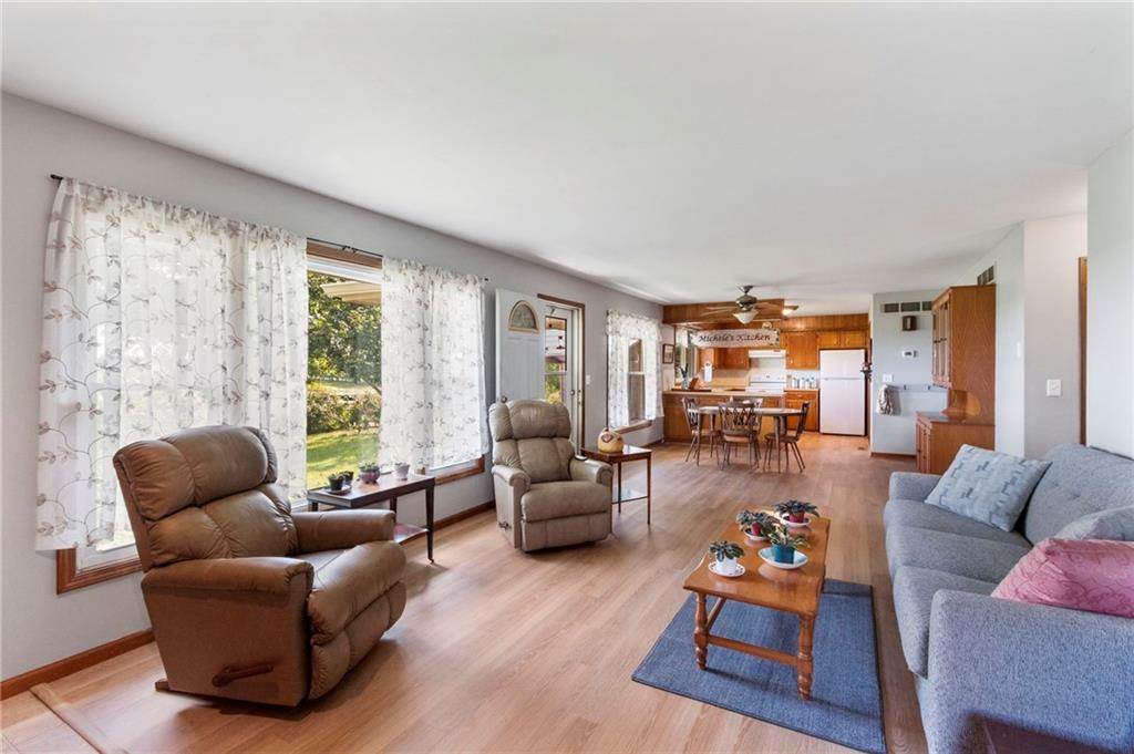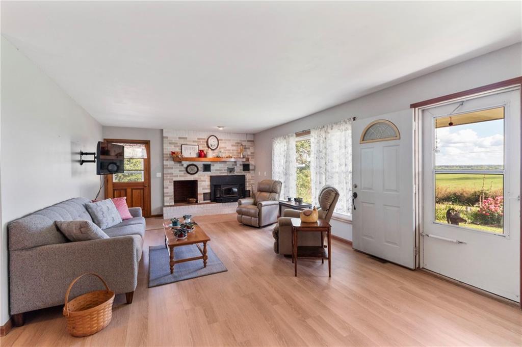 All-Brick Home on 10 Acres with Stunning Views! Welcome to this immaculate all-brick home nestled on 10 acres m/l of prime pasture and hay ground. This beautiful property is perfectly suited for livestock, including cattle and horses, with fencing already in place, plus a pond. The home features a well-designed main level with a spacious kitchen/dining combo, a comfortable living room, 2 bedrooms, 2 full bathrooms, and a conveniently located laundry area. Fresh interior paint and lots of new LVP flooring! Downstairs, the partially finished walk-out basement offers a third non-conforming bedroom, a 3rd full bath, and a large family room—just waiting for your finishing touch (ceiling not finished). Forced air furnace but also a Quadrafire brand fireplace insert that heats the whole house! You'll love the oversized attached two-car garage, plus carport, a large machine shed, an additional detached 2-car garage, and a garden shed with electric! The main barn also has electricity. For the green thumb, there's a greenhouse equipped with electric and overhead heat, plus a perfect garden spot nearby. The setting is simply stunning, with peaceful views. Work from home - not a problem as seller has United Fiber for internet services! Don't miss this rare opportunity to own a beautiful, well-maintained home on small acreage in a picturesque location. Additional land is available for sale. Home also available with 40+/- Acres MLS#2578287