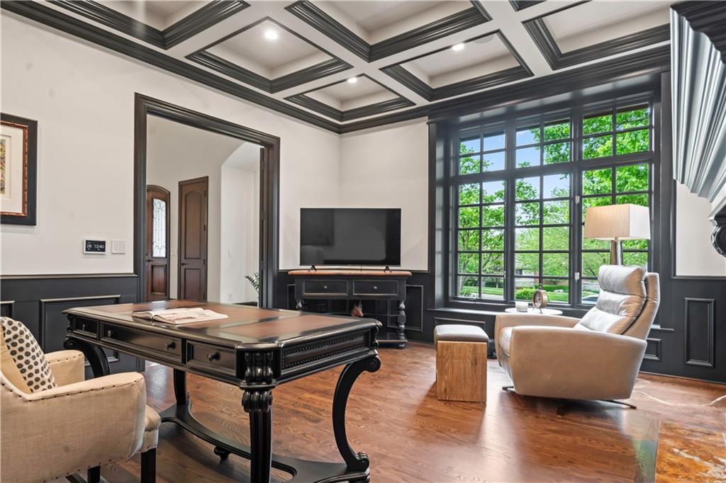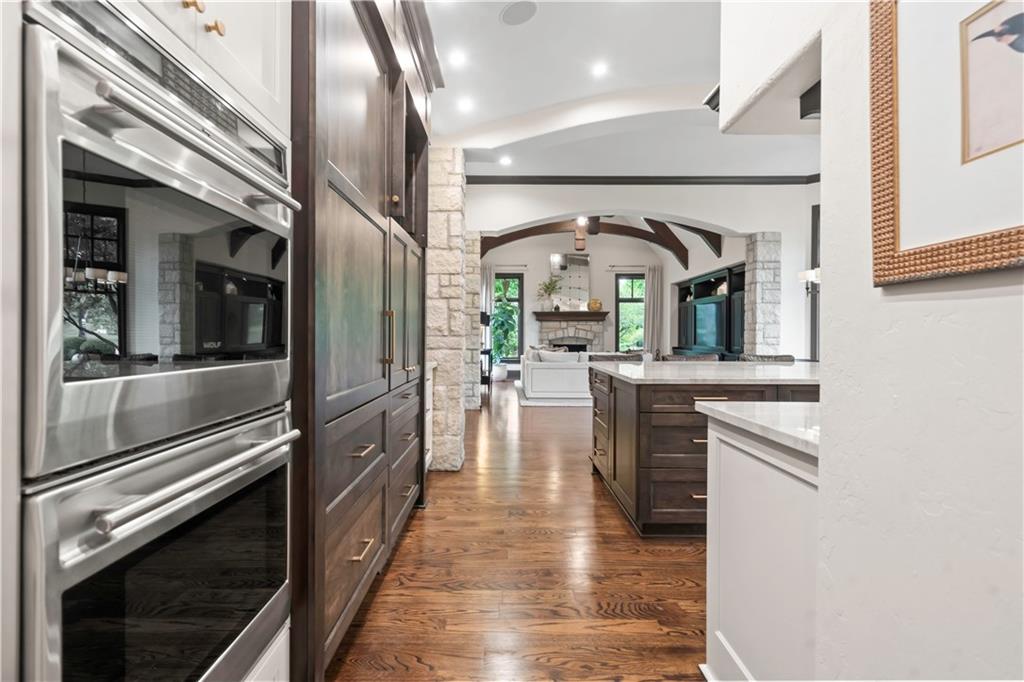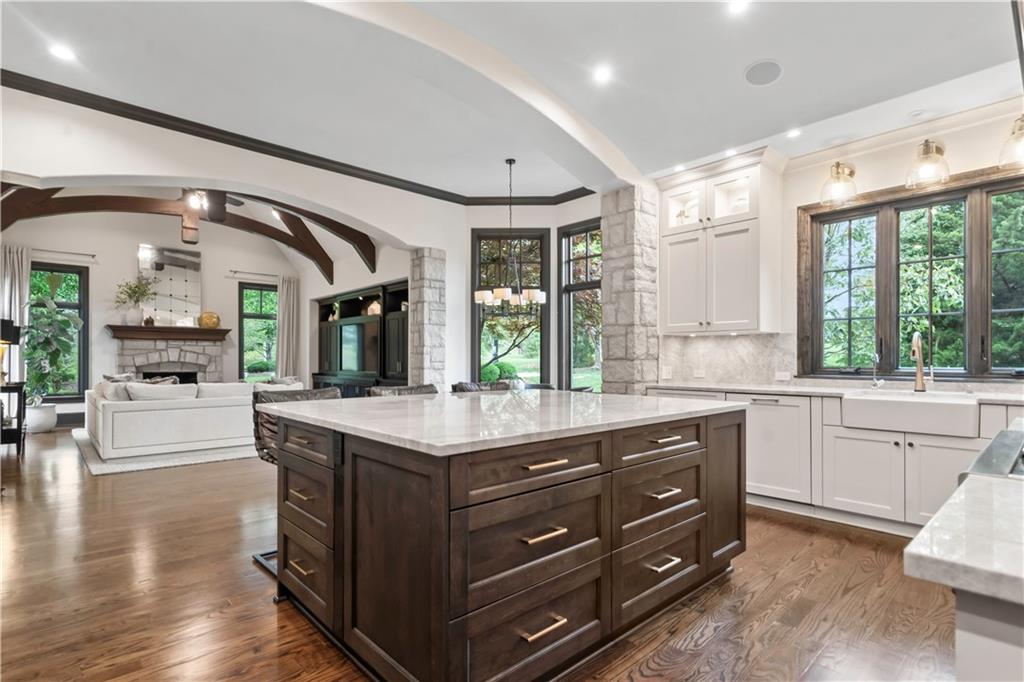 Exquisite 1.5-story home in Mission Farms that blends timeless elegance with modern updates on a beautifully landscaped lot. A dramatic staircase with custom ironwork, solid core doors, and upgraded trim showcase the craftsmanship throughout. The chef’s kitchen features quartzite countertops, custom cabinetry, and top-tier appliances, opening to a cozy hearth room. Formal dining and a spacious living room—ideal for a grand piano—flow seamlessly to a covered paver patio for effortless entertaining. The main-level primary suite is a private retreat with a spa-inspired bath and custom walk-in closet. A handsome office with fireplace completes the first floor. Upstairs offers three bedrooms with fresh paint, new carpet, and updated baths, plus a versatile loft. The lower level, finished by Rick Standard, is designed for entertaining with a full bar, media room, wine cellar, workout room, and fifth bedroom. Multiple outdoor living areas, a sport court, and large backyard provide space to relax, gather, or play. This stately estate offers luxury, comfort, and thoughtful design in one of the area’s most desirable neighborhoods.