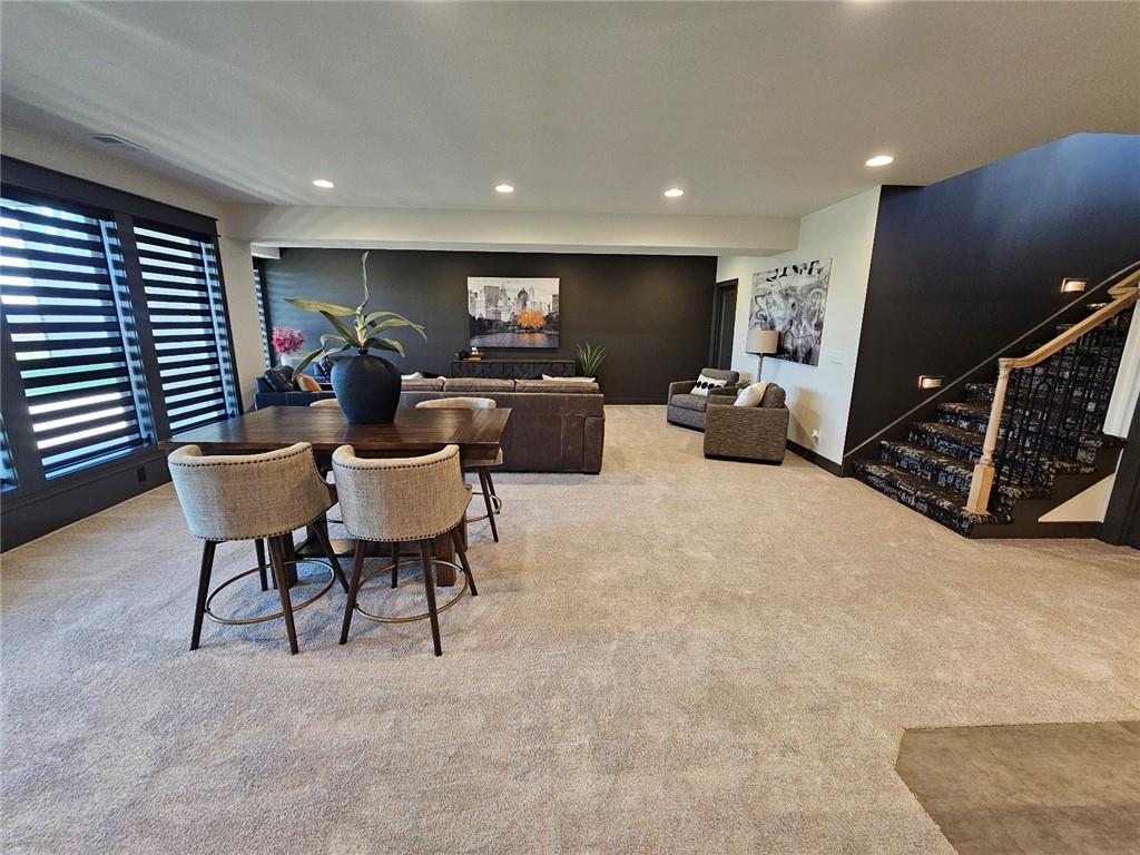 C & M Builders brings their fabulous Windsor Rev. 1.5 sty plan to Johnson Counties newest maintenance provided community of Prairie Canyon. Conveniently located just west of K-7 off of College Blvd., this model home currently not for sale features a wide & open entry that looks into a spectacular Great rm./Kitchen/Dining combo that include a corner FP, large island, huge walk-in pantry & mud room! Luxurious primary suite features a custom walk-in shower & huge walk-in closet. Main floor also includes a 2nd bedroom or Den. Finished walkout LL features a walk up wet bar, very spacious family, entertainment & recreation space, 2 generous bedrooms & a full bath. First floor covered deck w/FP and LL covered patio.