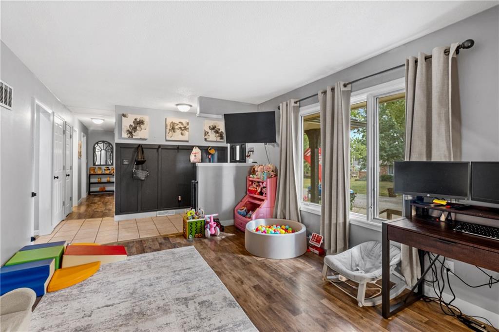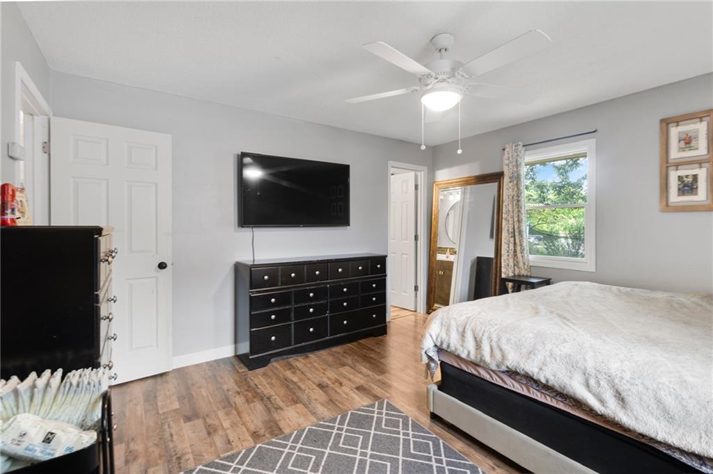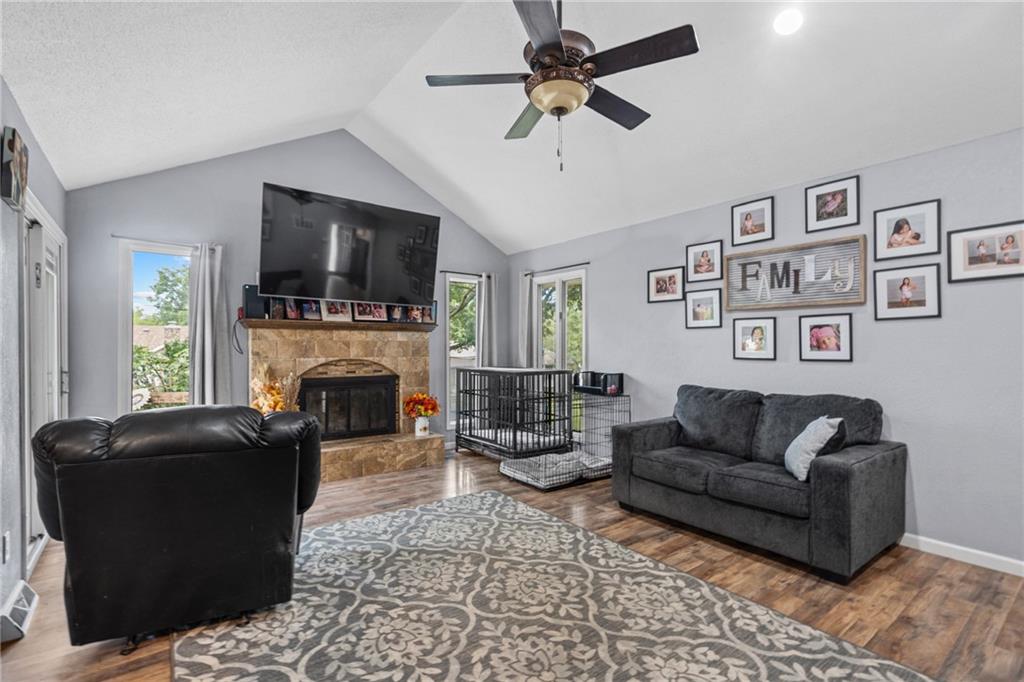 Well-maintained 3-bedroom, 2.5-bath raised ranch in a quiet Harrisonville neighborhood. This charming home features vaulted ceilings, a spacious living room with a stone fireplace, and tons of natural light. The kitchen opens to a dining/flex area, perfect for entertaining. The finished lower level includes a half bath and bonus living space—great for a playroom, office, or guest area. Enjoy a fenced backyard, large deck, and mature trees. Newer flooring, fresh interior paint, 2-car garage, and easy highway access. Move-in ready and full of potential!