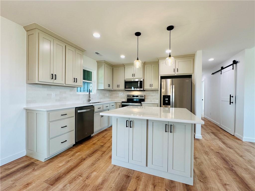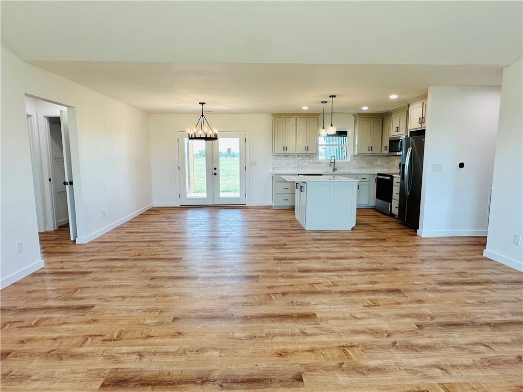 Welcome to this stunning, brand-new, custom-built home situated on two acres of picturesque prairie land. This slab home features a metal roof and siding with a partial stone front, offering low-maintenance living while combining modern design with serene country charm. Conveniently located on a paved road just two miles west of Highway 69 and ten miles north of Pittsburg, KS, the property provides both privacy and easy accessibility. Inside, the open-concept floor plan showcases a spacious living room with vaulted ceilings and expansive windows that frame unobstructed prairie views. The kitchen is equipped with custom cabinetry, quartz countertops, a striking backsplash, and a large central island, complemented by a complete four-piece stainless steel appliance suite, and a spacious pantry. Lifeproof luxury vinyl flooring and recessed lighting flow throughout the home, offering both durability and contemporary style. This home includes four bedrooms, one of which can serve as an office or flex space, along with two full bathrooms featuring custom vanities with quartz tops. The primary suite offers a generous walk-in closet, double vanities, and a walk-in shower, while each additional bedroom provides ample storage. A thoughtfully designed mudroom and laundry area, complete with custom cabinetry and a built-in hall tree, enhance everyday convenience. This property is completed by a spacious two-car garage and covered front and back porches, ideal for enjoying the scenic surroundings. With its high-quality construction, modern finishes, and tranquil setting, this property represents a rare opportunity for those seeking a new construction home in the country! Don’t miss your chance to make this home yours—schedule your private showing today! Note: listing agent is directly related to seller.