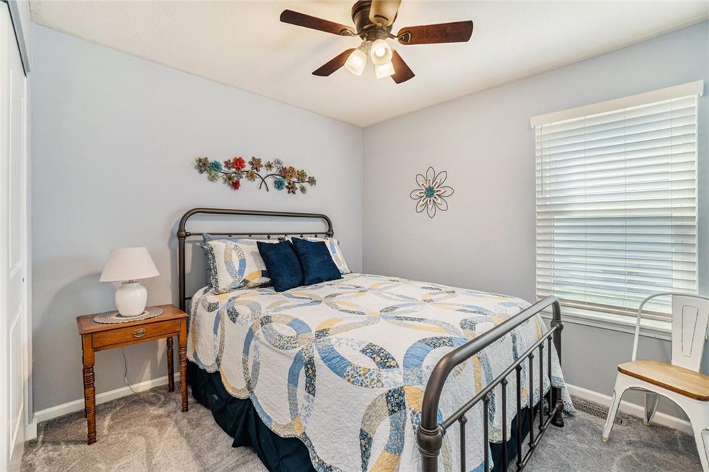 Come see this beautiful and well-designed ranch style home with a private back yard and AMAZING VIEW of trees. The seller has lovingly cared for this home and has completed many professional updates including: Thermal King windows, new exterior doors, new interior paint, re-finished hardwood floors, new carpet, and updated bathrooms. The single-level layout is convenient for those who prefer to avoid stairs, and the open floor plan allows for easy movement between living areas. The living room features a high ceiling, abundant natural light, and a ceiling fan. The eat-in kitchen provides generous cabinet storage and counter space as well as a pantry, making meal preparation simple. A dedicated laundry room on the main level keeps everything within easy reach. All three bedrooms are on the main level and have newer carpet and ceiling fans. The primary bedroom features a walk-in closet and a beautifully updated bathroom. The second bathroom has also been updated. The two car garage is clean and wide enough for storage shelves. The unfinished basement offers abundant storage and future additional square footage that could be finished. It has an egress window for a potential bedroom and is stubbed for a full bathroom. Outside, you will enjoy the benefits of the low-maintenance vinyl siding. The home is beautifully landscaped in front and back. The yard is fully fenced and offers a private and serene view of trees on two sides. The patio is partially covered and is the perfect place to watch the sunsets. The yard is level and just the right size for gardening and pets. If you don't want to take care of the lawn and snow removal - simply hire the same company the current owner uses. If you prefer to take care of the lawn yourself, that's an option too! This home is easy to maintain, efficient to live in, and well-situated for an active but simplified lifestyle! Seller is motivated and can provide quick possession. Schedule a showing today!