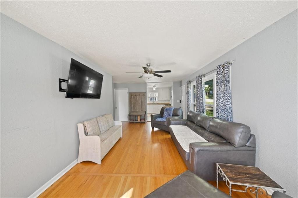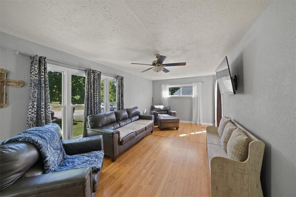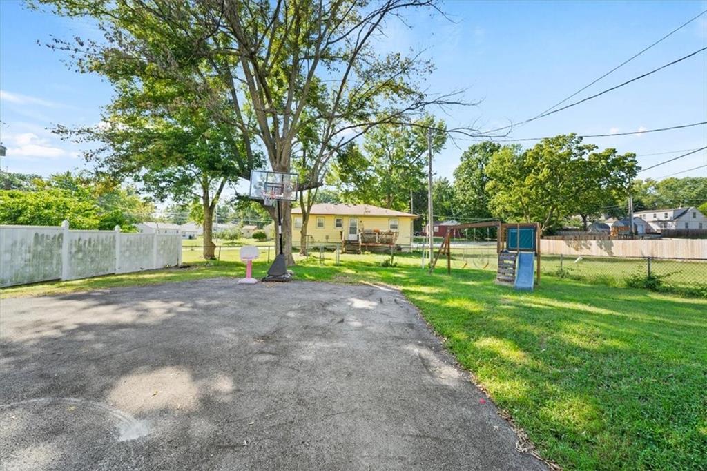 Welcome to this adorable and well-maintained ranch home, full of charm and comfort. Step inside to a bright living room with hardwood floors, a well-appointed kitchen with all appliances included, two bedrooms, and a full bath on the main level. Hardwood flooring extends through the living room, hall, and both bedrooms, while the kitchen and bath feature tile flooring. The second level offers a third bedroom for additional living space. Walk out from the living room to a large patio with pergola and string lighting, perfect for relaxing evenings or entertaining guests. The clean, unfinished basement provides ample storage and includes access to the single-car garage. Exterior highlights include a fully fenced yard with a privacy gate and a resurfaced driveway.