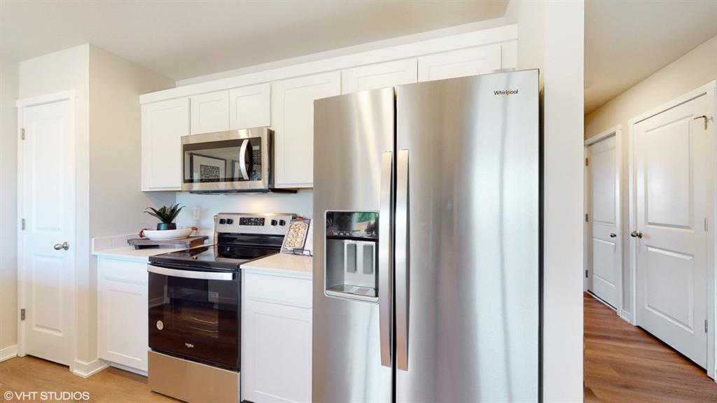 Welcome to Ella's Crossing, where modern design meets timeless elegance in this exceptional home crafted by D.R. Horton, “America’s Builder.” This residence greets you with a three-rail, two-panel insulated front door that enhances both curb appeal and energy efficiency. Step inside to find a beautifully appointed interior with 9-foot ceilings that exude sophistication. The chef’s kitchen is the heart of the home, featuring 36-inch painted maple cabinets, quartz countertops, and state-of-the-art Whirlpool® stainless steel appliances, all designed to make cooking a pleasure. Retreat to the spa-inspired bathrooms, where quartz-topped vanities, Moen® Chrome Faucets, and luxurious showers await. The primary bath offers a 5-foot shower with a framed glass enclosure, ensuring your daily routines are indulgent experiences. This home is designed for the future with advanced Smart Home technology, including a Honeywell® Pro Z-Wave® Thermostat, Amazon Echo, and a connected home panel, allowing you to control and monitor your home from anywhere. Energy efficiency is prioritized with LED lighting throughout, a high-efficiency gas furnace, and insulated low E vinyl windows, ensuring comfort and savings year-round. Additional features such as luxury vinyl plank flooring, a spacious garage with opener(s), and detailed wiring solutions like dual data/TV lines in the main bedroom and family room, enhance both convenience and style. D.R. Horton’s commitment to quality is evident in every aspect of this home, offering you a place where luxury, technology, and comfort come together seamlessly. Don’t miss your chance to own this extraordinary home in Ella's Crossing. Schedule your private tour today and experience the D.R. Horton difference!