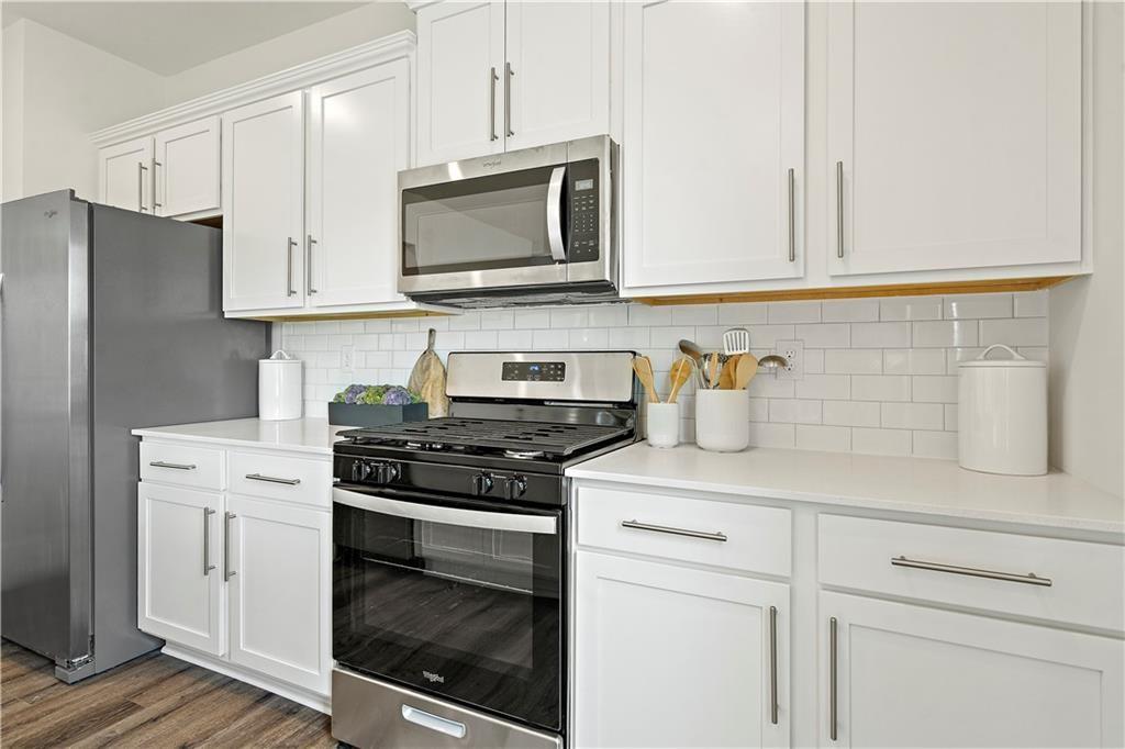 Welcome to Ella's Crossing, where modern design meets timeless elegance in this exceptional home crafted by D.R. Horton, “America’s Builder.” This residence greets you with a three-rail, two-panel insulated front door that enhances both curb appeal and energy efficiency. Step inside to find a beautifully appointed interior with 9-foot ceilings that exude sophistication. The chef’s kitchen is the heart of the home, featuring 36-inch painted maple cabinets, quartz countertops, and state-of-the-art Whirlpool® stainless steel appliances, all designed to make cooking a pleasure. Retreat to the spa-inspired bathrooms, where quartz-topped vanities, Moen® Chrome Faucets, and luxurious showers await. The primary bath offers a 5-foot shower with a framed glass enclosure, ensuring your daily routines are indulgent experiences. This home is designed for the future with advanced Smart Home technology, including a Honeywell® Pro Z-Wave® Thermostat, Amazon Echo, and a connected home panel, allowing you to control and monitor your home from anywhere. Energy efficiency is prioritized with LED lighting throughout, a high-efficiency gas furnace, and insulated low E vinyl windows, ensuring comfort and savings year-round. Additional features such as luxury vinyl plank flooring, a spacious garage with opener(s), and detailed wiring solutions like dual data/TV lines in the main bedroom and family room, enhance both convenience and style. D.R. Horton’s commitment to quality is evident in every aspect of this home, offering you a place where luxury, technology, and comfort come together seamlessly. Don’t miss your chance to own this extraordinary home in Ella's Crossing. Schedule your private tour today and experience the D.R. Horton difference!