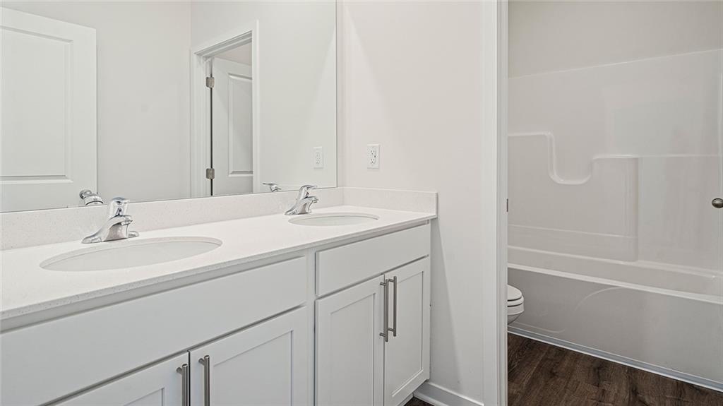 Welcome to Ella's Crossing, where modern design meets timeless elegance in this exceptional home crafted by D.R. Horton, “America’s Builder.” This residence greets you with a three-rail, two-panel insulated front door that enhances both curb appeal and energy efficiency. Step inside to find a beautifully appointed interior with 9-foot ceilings that exude sophistication. The chef’s kitchen is the heart of the home, featuring 36-inch painted maple cabinets, quartz countertops, and state-of-the-art Whirlpool® stainless steel appliances, all designed to make cooking a pleasure. Retreat to the spa-inspired bathrooms, where quartz-topped vanities, Moen® Chrome Faucets, and luxurious showers await. The primary bath offers a 5-foot shower with a framed glass enclosure, ensuring your daily routines are indulgent experiences. This home is designed for the future with advanced Smart Home technology, including a Honeywell® Pro Z-Wave® Thermostat, Amazon Echo, and a connected home panel, allowing you to control and monitor your home from anywhere. Energy efficiency is prioritized with LED lighting throughout, a high-efficiency gas furnace, and insulated low E vinyl windows, ensuring comfort and savings year-round. Additional features such as luxury vinyl plank flooring, a spacious garage with opener(s), and detailed wiring solutions like dual data/TV lines in the main bedroom and family room, enhance both convenience and style. D.R. Horton’s commitment to quality is evident in every aspect of this home, offering you a place where luxury, technology, and comfort come together seamlessly. Don’t miss your chance to own this extraordinary home in Ella's Crossing. Schedule your private tour today and experience the D.R. Horton difference!