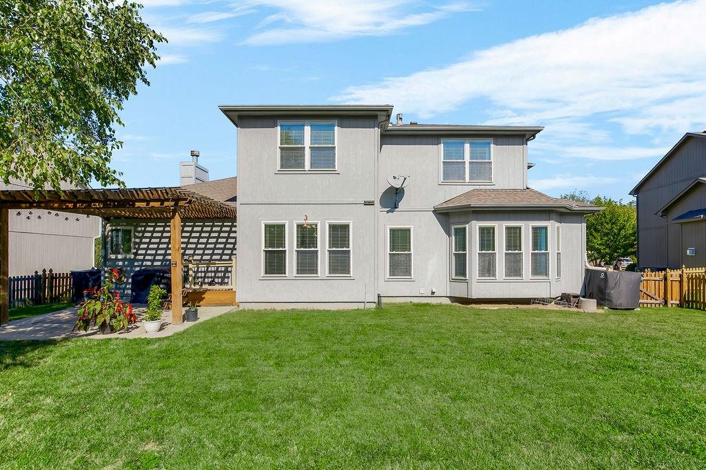 Live The Lifestyle You’ve Always Imagined In Amber Meadows Impeccably designed and meticulously maintained, this remarkable 1.5-story with finished basement home of almost 3,900 sq ft, with 5 bedrooms and 3 and a half bathrooms blends modern updates with a family oriented layout. You'll find walking trails, a neighborhood pool and a quiet, serene place to call home for you and your family. The heart of the home is a generously sized kitchen with pristine quartz countertops, a walk-in pantry, and a custom beverage center—crafted for both culinary artistry and effortless entertaining. The main-level primary suite is a private sanctuary, featuring dual sinks, a separate vanity, an expansive walk-in closet with built-in cabinetry, and direct access to the laundry room for ultimate convenience. Ascend to the upper level, where you’ll discover three spacious bedrooms, and a full bath, each offering comfort and style. The finished lower level elevates the home with a trendy wet bar, a generous entertainment space, a fifth bedroom, and a full bath—ideal for guests or extended gatherings. Outside you will find a beautifully designed patio with pergola, perfect for hosting entertaining evenings with friends and family or simply enjoying serene moments outdoors. A rare offering in the coveted Amber Meadows community, this home is the epitome of suburban living. Prepare to be inspired—schedule your private showing today. Kansas City, MO address - Liberty Schools!