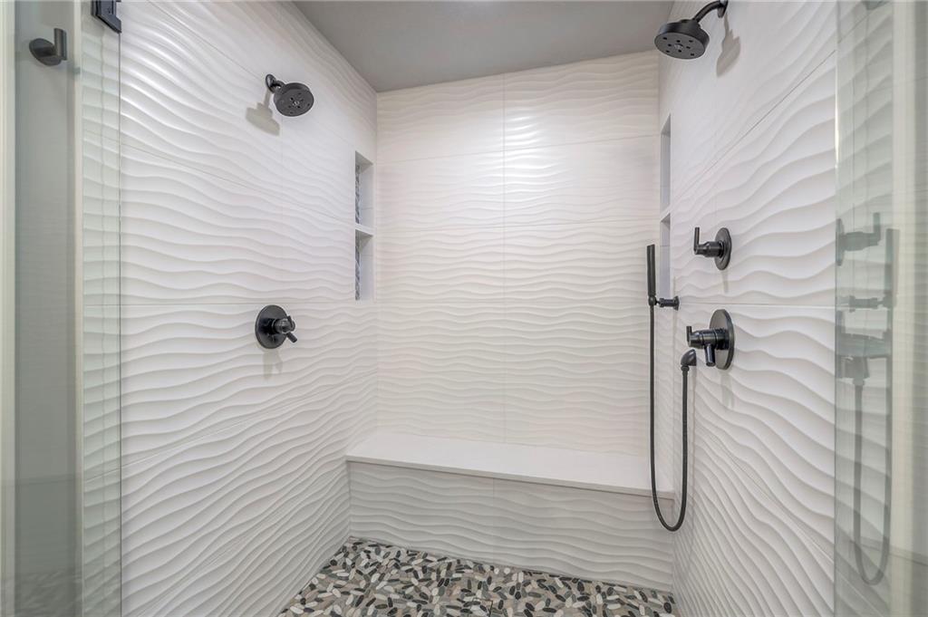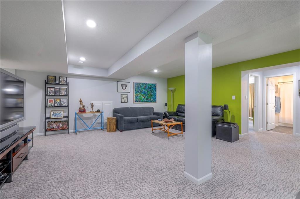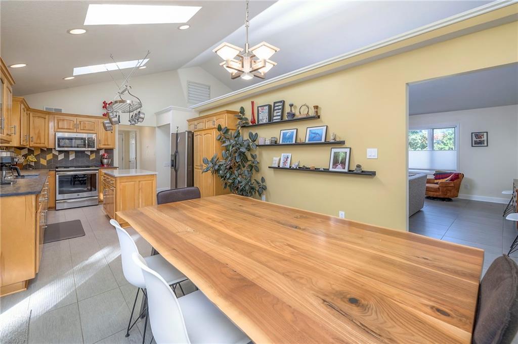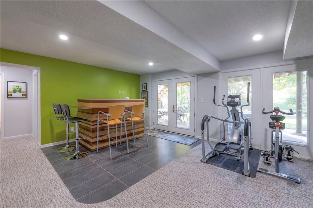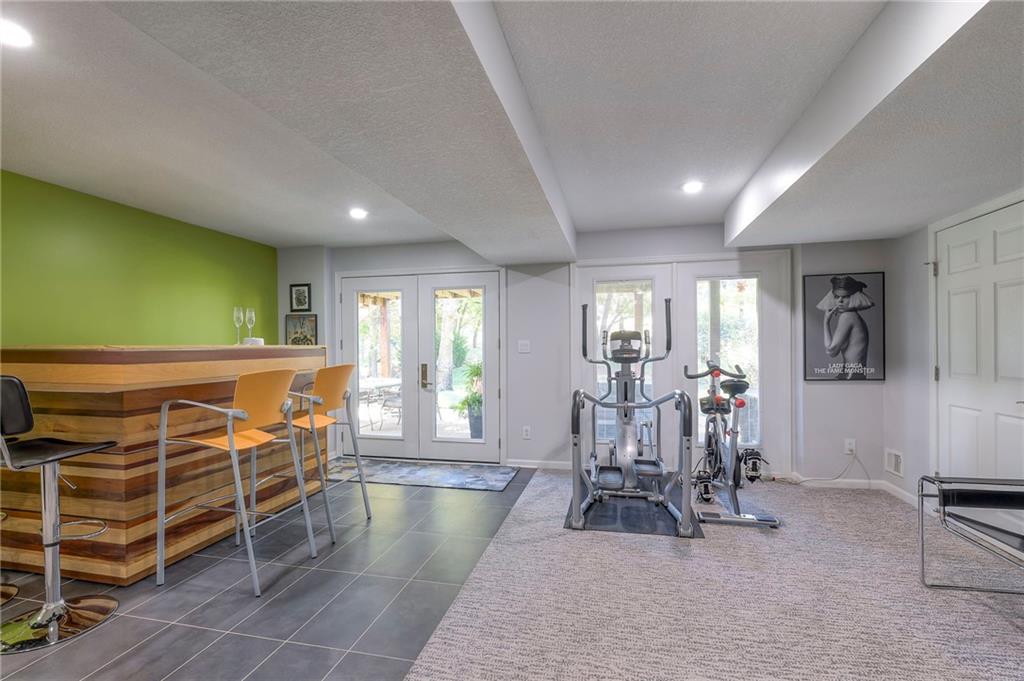 Welcome to this beautifully updated 3-bedroom, 2.5-bath reverse 1.5-story home sitting on a scenic .65-acre lot! Step inside a light-filled living room featuring vaulted ceilings, porcelain tile floors, a ceiling fan, and an abundance of natural light. The updated kitchen is a true highlight, featuring granite countertops, stainless steel appliances, a stylish backsplash, and a spacious eat-in dining area—perfect for daily living or entertaining. The primary suite is your personal retreat, offering a large walk-in closet and a fully updated en-suite bathroom designed for relaxation. Convenient main-level living flows seamlessly into the finished walkout lower level, complete with a large rec room, two additional bedrooms, and a full bath. French doors open to a patio with a hot tub overlooking the private, fenced backyard with a firepit—ideal for cozy fall evenings. Outside, you’ll find even more to love. The backyard features a versatile finished outbuilding, for use as a bonus entertaining space, gym, or office, and half for all your storage or yard equipment needs. Mature trees and a park-like setting provide the perfect blend of privacy and outdoor enjoyment. With recent updates, including newer windows, this home is truly move-in ready. Add in its unbeatable location—just minutes from shops, restaurants, highway access, and KCI airport—and you’ve got a home that checks every box.