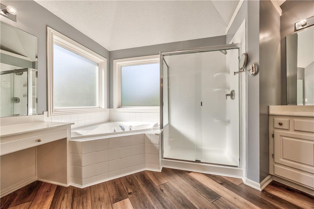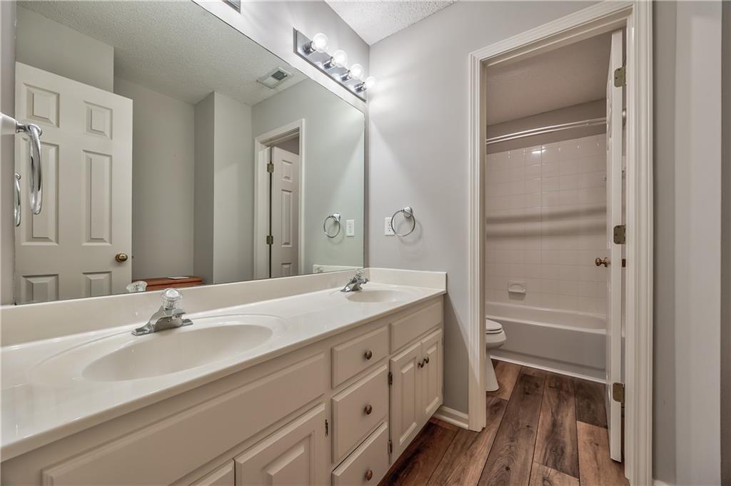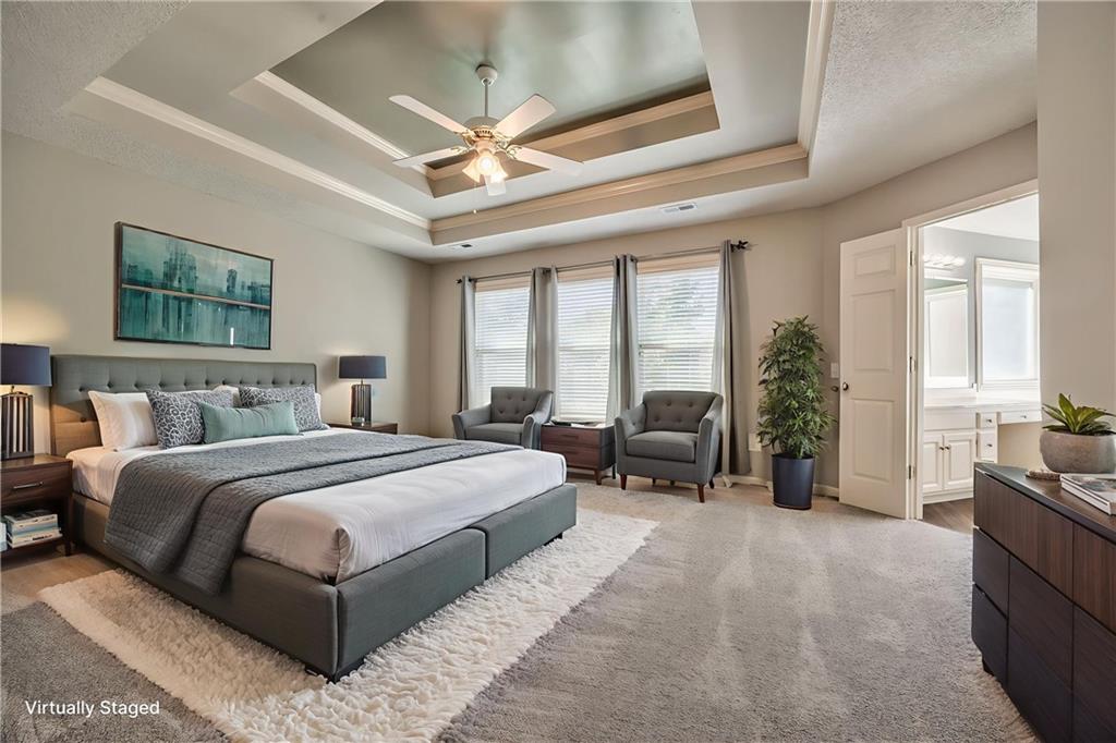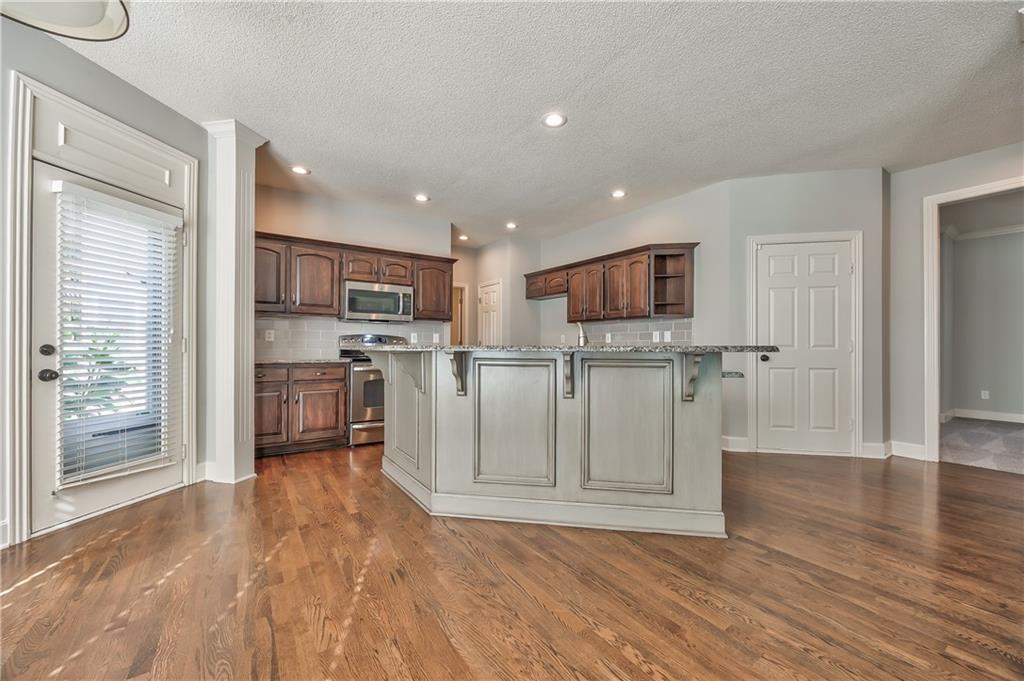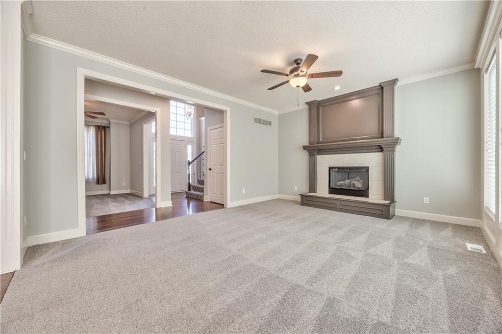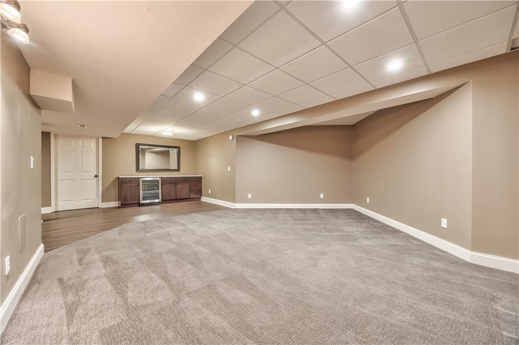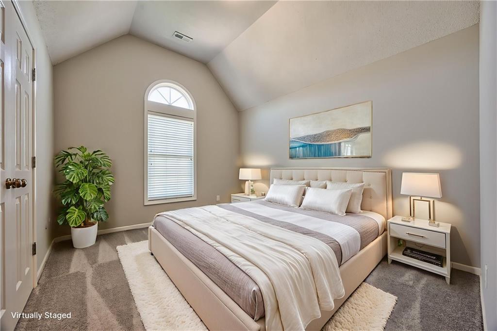 Beautiful 2-story home on a cul-de-sac in Olathe! Step inside to find a flexible front room, perfect as a formal dining space or a home office. Brand new carpet and fresh interior paint throughout! The inviting great room features a cozy gas fireplace with elegant, fluted trim and mantle. The eat-in kitchen offers hardwood floors, a large island, granite countertops, subway tile backsplash, stainless steel appliances, a pantry, and a spacious breakfast area that easily fits a full-size dining table. Upstairs, the spacious primary suite impresses with a vaulted ceiling, soaker tub, separate shower, dual vanities, and walk-in closet. Additionally, the secondary bedrooms are generously sized and there is a second full bath. The finished lower level is made for entertaining with a large rec room, sleek bar featuring quartz countertops, a beverage fridge plus a convenient half bath. Unfinished space offers plenty of room for storage. Additional main-floor perks include a half bath and a laundry/mudroom with exterior access to the backyard. Recent updates include comfort-height toilets, kitchen backsplash, primary shower tile, and a fully finished basement. Enjoy outdoor living on the expansive deck with private basketball court and landscaped, treed yard. The two-car garage features built-in shelving and a workbench. Radon mitigation system in place.