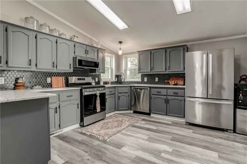 Come fall in love with this beautifully maintained four-lot property featuring a spacious 4-bedroom, 2.5-bath home with over 2,200 sq. ft. of living space. This move-in-ready gem offers two inviting living rooms, walk-in closets in two bedrooms, and a large kitchen showcasing stunning quartz countertops and stainless-steel appliances perfect for cooking and gathering. In the past two years, nearly everything has been refreshed: new vinyl siding, windows, flooring, interior paint, light fixtures, metal front and back doors, microwave, quartz countertops, and gas stove. The HVAC is only one year old, giving you peace of mind and comfort for years to come. Enjoy your mornings on the newly stained front porch or unwind on the private back deck—ideal for entertaining or relaxing under the stars. There’s even a tornado shelter and the convenience of rural water—no deliveries needed! This home sits in a wonderful community that truly has it all an 18-hole golf course, clubhouse with regular activities, community center with fitness room, two swimming pools, mini golf, basketball and tennis courts, walking trails, playground, fishing dock, boat ramp, campgrounds, beach, sand volleyball, and several stocked lakes including one where you can boat and jet ski. Come see why this home isn’t just a place to live it’s a lifestyle!