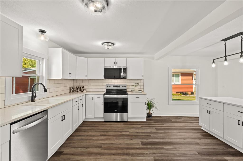 Beautifully updated 3 bedroom, 2 bath home with a large mud room/laundry on nearly half an acre backing up to park! This property has been renovated with a new roof, all new thermal windows, new HVAC, updated electrical with a new 200 amp breaker box, new siding on garage, front and back of house. The detached 2 car garage has a basement and sump pump. Inside you'll find new luxury vinyl plank flooring, new carpet and fresh paint. The kitchen offers plenty of storage with a pantry, center island, loads of new cabinets, quartz counter tops, new Range, microwave and dishwasher. Bathrooms have been completely refreshed with new tub, showers, vanities and toilets. With its prime location, modern updates, and spacious layout, this home is truly move-in ready! Owner/agent