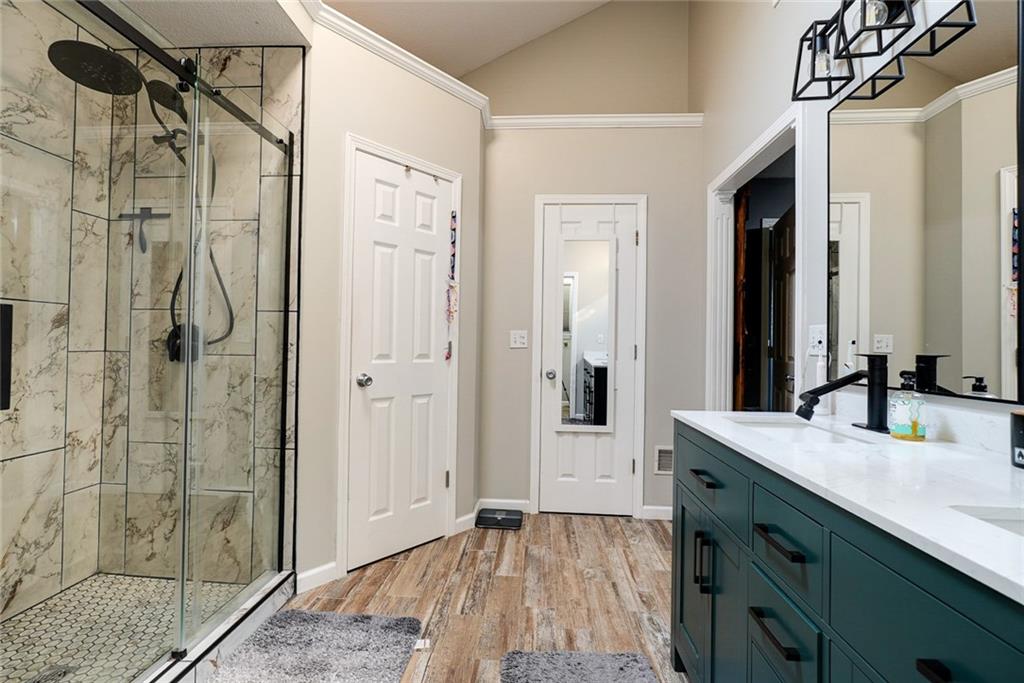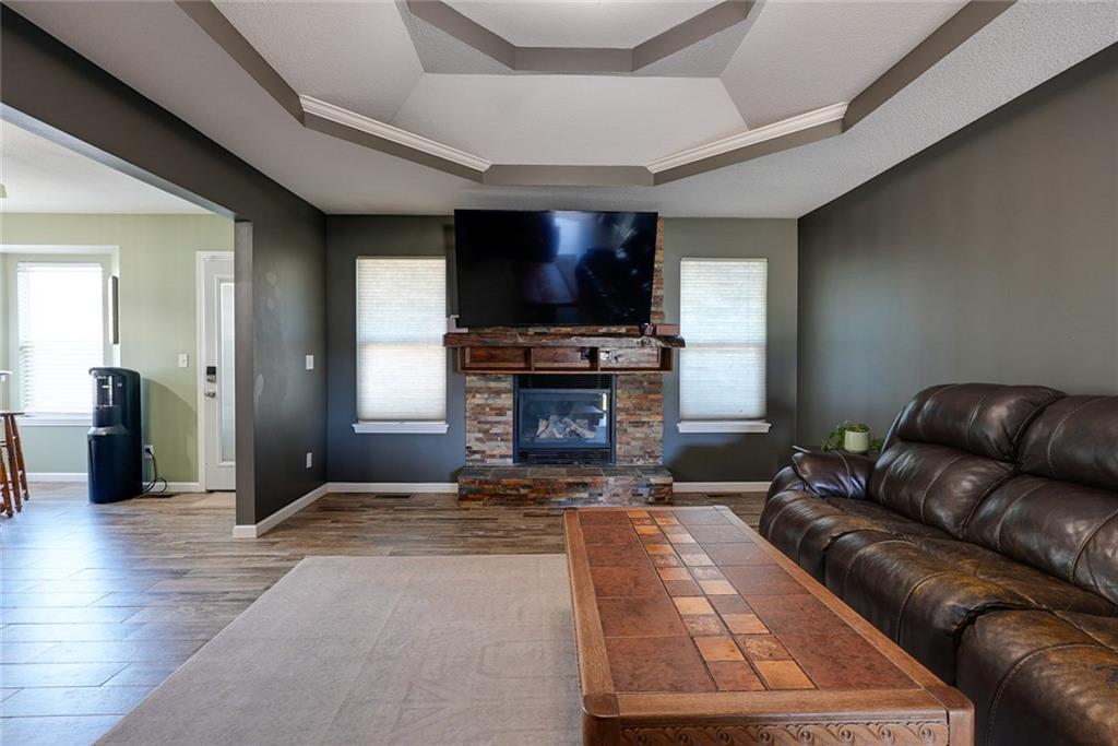 MOTIVATED Sellers offering this Beautifully Updated 5-Bedroom, 3- Bathroom Home with Country road vibe and Modern Comforts. Tucked away on quiet country back roads yet just minutes from town, this fully updated 5-bedroom, 3-bathroom home offers the perfect blend of seclusion and convenience. The open floor plan connects a spacious living room, large dining area, and stunning kitchen with a Large Island to accent it all.—ideal for entertaining or family gatherings. The main floor features three well sized bedrooms including a beautiful primary suite with raised ceilings, updated and modern master bathroom with sizeable His/Hers closet space and a Double vanity.All while the finished walk-out lower level offers two additional spacious bedrooms, a second living room area for any sized gathering to enjoy the ample space including your own personal theatre area,a third full bathroom, plus abundant storage space. Step outside to a large back deck overlooking the fully fenced yard surrounded by a privacy fence. The open lot next door enhances the peaceful setting, giving you extra breathing room. Located in a desirable neighborhood with No HOA and part of the highly sought-after Grain Valley School District, this home combines rural charm with modern convenience.