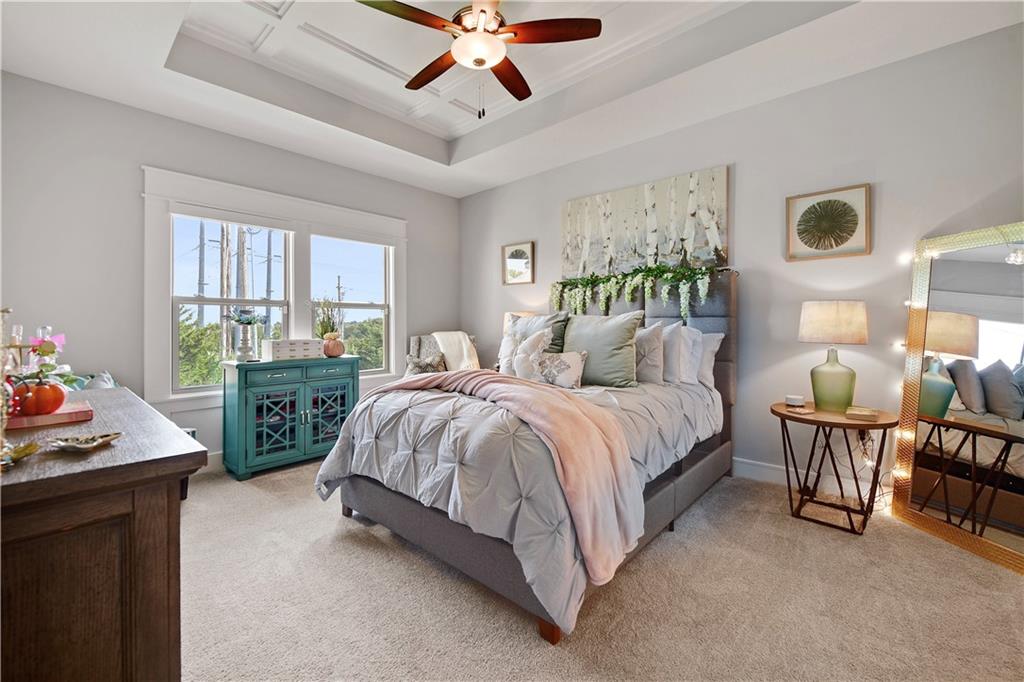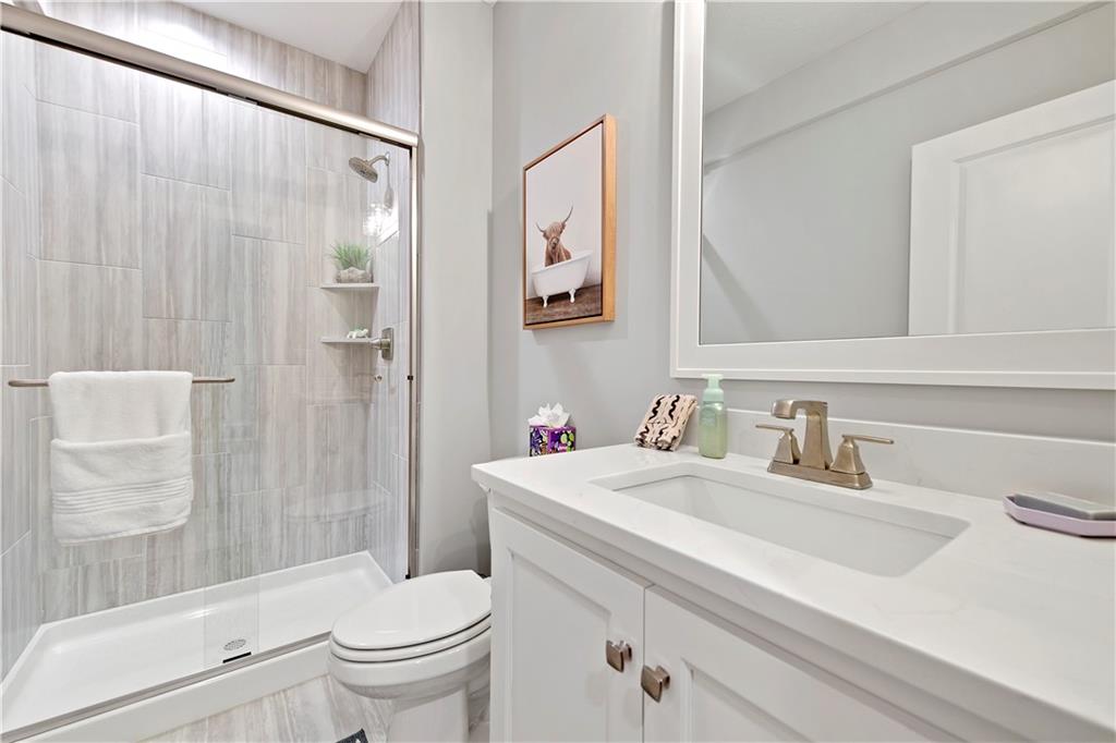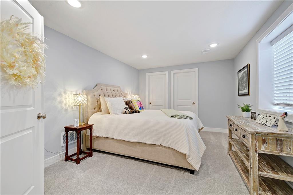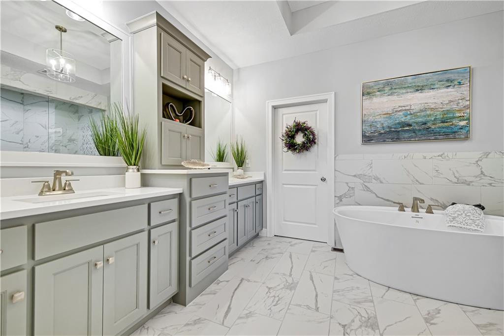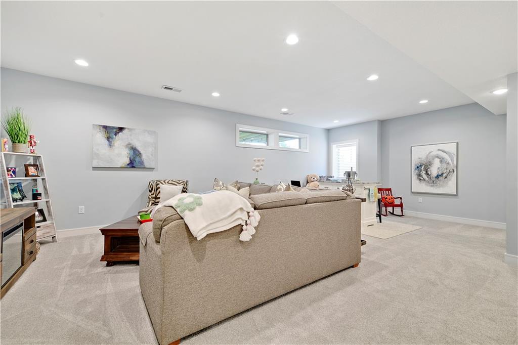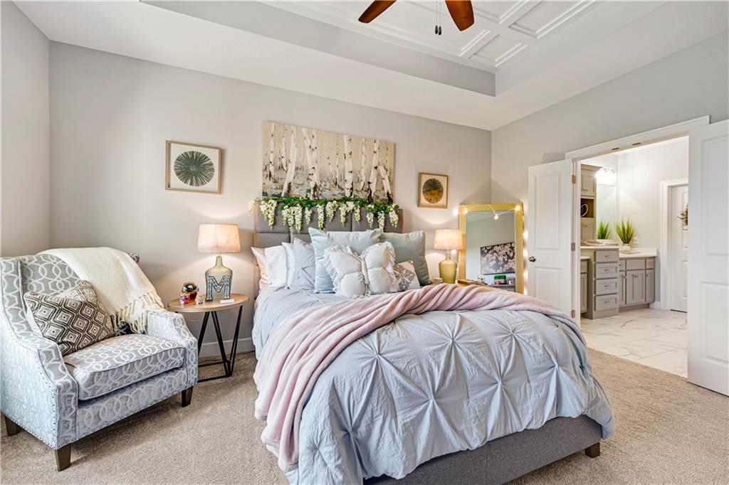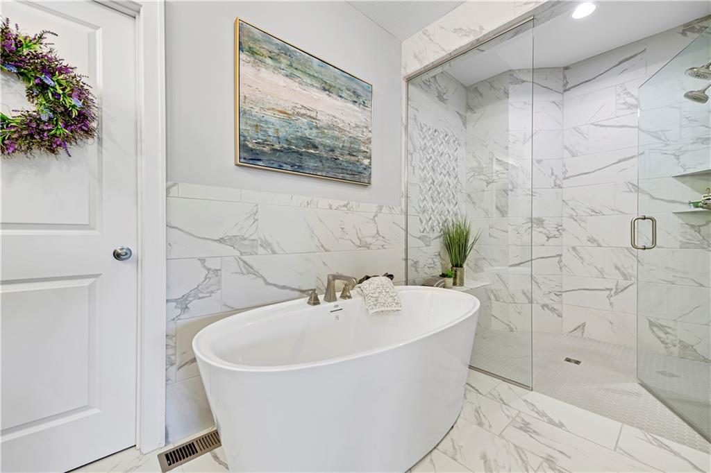 The best of both worlds! This home is nearly brand NEW (gently lived in for just over a year) and comes equipped with all the extras - MOTORIZED BLINDS, SCREENED IN PORCH, E/V CHARGER, GORGEOUS LANDSCAPING AND A TREED BACKYARD! This home is move-in ready. Upon entering this 4 bedroom/3 bathroom reverse 1.5 story home you will fall in love with the fantastic views of beautiful greenspace in Crestwood Village. The entry and living area, boasting 11-foot ceilings, hardwood floors, and exquisite architectural design will welcome guests straight into a luxurious kitchen - ready for entertaining. With a large granite island, gas cooktop, walk-in pantry, goose-neck faucet, S/S appliances and pendant lighting, this fresh, new space will be the perfect place to gather. The main level hosts a primary suite with and bathroom with a spa-like feel - walk in shower, soaking tub, and double-bowl vanity with quartz counters. Head straight into the HUGE, walk-in closet with 3-tiered off-season storage and continue next into the laundry room - so much convenience! On the main level, you will also find a second bedroom/flex room for guests to stay or to be utilized as a home office adjacent to a full bathroom. The lower level features a daylight basement, generous family room, 2 bedrooms, 1 bath, and a full bar with beverage center. Fourth bedroom with French-style doors in the lower level could be utilized as a yoga room or a home office. This home backs up to green space and has a beautiful, PRIVATE, OVER-SIZED composite deck with SCREENED-IN PORCH. Driveway is a private, single drive. Crestwood Village is maintenance provided - now your time is your own! Great location - close to shopping, restaurants, trails and parks. Don't miss out on this beautiful villa in a highly-desired location!
