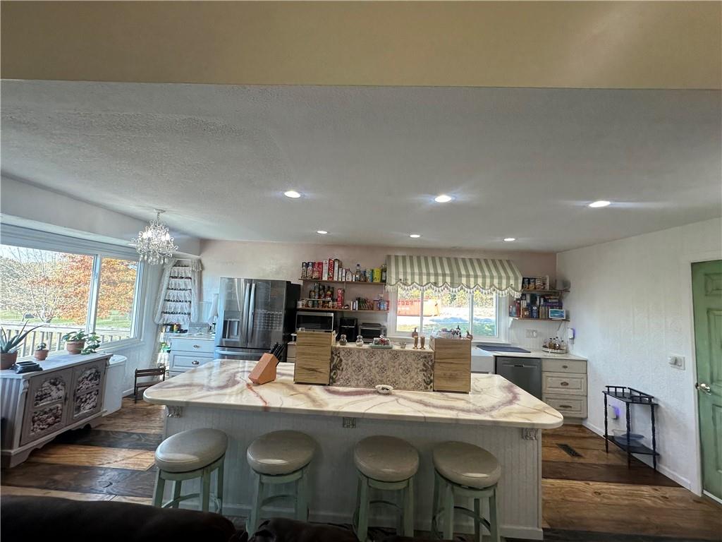 Gorgeous home on 14.62 acres — your own private paradise! Enjoy peaceful country living with a stocked pond and covered deck, 30x30 shop with 12x60 and 10x30 lean-tos, multiple fenced areas, chicken coop, outbuildings, creek, trees, and amazing landscaping with tons of flowers. Owner’s pride shines throughout this beautifully maintained property! Inside, you’ll find bamboo flooring throughout, vaulted ceilings, and a welcoming open layout. The kitchen features granite countertops, ample cabinetry, and opens nicely to the living area with fireplace. Finished walkout basement offers a large family room, bedroom, bath, and plenty of storage space. The barn includes 5 stalls, and the tinted windows help keep utilities low. Relax on your back deck overlooking the pond, fish in your own water, or watch the abundant wildlife — deer, birds, and more! This is truly a one-of-a-kind property, move-in ready and perfectly set up for peaceful country living. 4 bedrooms | 3 baths | Finished walkout basement | 14.62 acres | Shop, barn, pond & more!