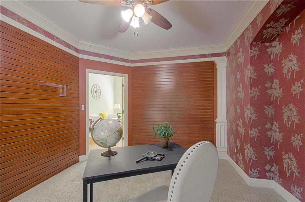 Gorgeous Light Filled Home w/ over 5000 sq ft of total living space! Perfect home for Entertaining! Soaring ceilings & plantation shutters throughout Main living area! Beautiful Hardwoods & Tons of Custom Molding! Huge Chef's Kitchen w/ incredible storage, oversized walk in pantry, Stainless steel appliances- double ovens, gas cooktop, microwave drawer- custom cabinets & Kitchen Island. 4 Fireplace-Hearth Room, Great Room, Primary Bedroom & Recreation Room in basement! Beautiful Main Level Owners Suite w/ HUGE walk in closet, & luxurious bath!!Main Level Office has Acoustic Wood Slat Wall Paneling. The 2nd level has 3 Large bedrooms w/ walk in closets & bathroom access. 2nd Floor Loft area! Basement Theatre room has 75 inch SONY TV --Perfect for watching Football Games or Movies! Recreation Room has fabulous wet bar w/ dishwasher & wine storage. The lower level bedroom is perfect for guests or as a designated work out room! There is a walk in closet & bath access. Upgrades Galore- New 50 year lifetime roof with ice & water shield w/ transferable warranty, 6 inch gutters & leaf guards. Full outdoor lighting system! High End Sun Shade on backyard deck provides amazing shade on sunny days & includes retractable wind feature! Built in Sound system in Hearth room & Owners bedroom. New LED light bulbs throughout most of home. Comfort height toilets added to Main level & basement bath.Google Fiber! Gevanti outdoor weather station on back deck with inside monitor provides real time weather report! 800 sq ft of basement storage space. Radon mitigation system. Custom rope lighting system in front foyer niche & basement theatre room provides fun & mood lighting! Sit on the Front Porch and Watch Football Homecoming Parade in the Fall! AAA Rated Schools & Super convenient location close to shopping, restaurants schools and great highway access.Seller providing a 1 year home warranty from Old Republic!