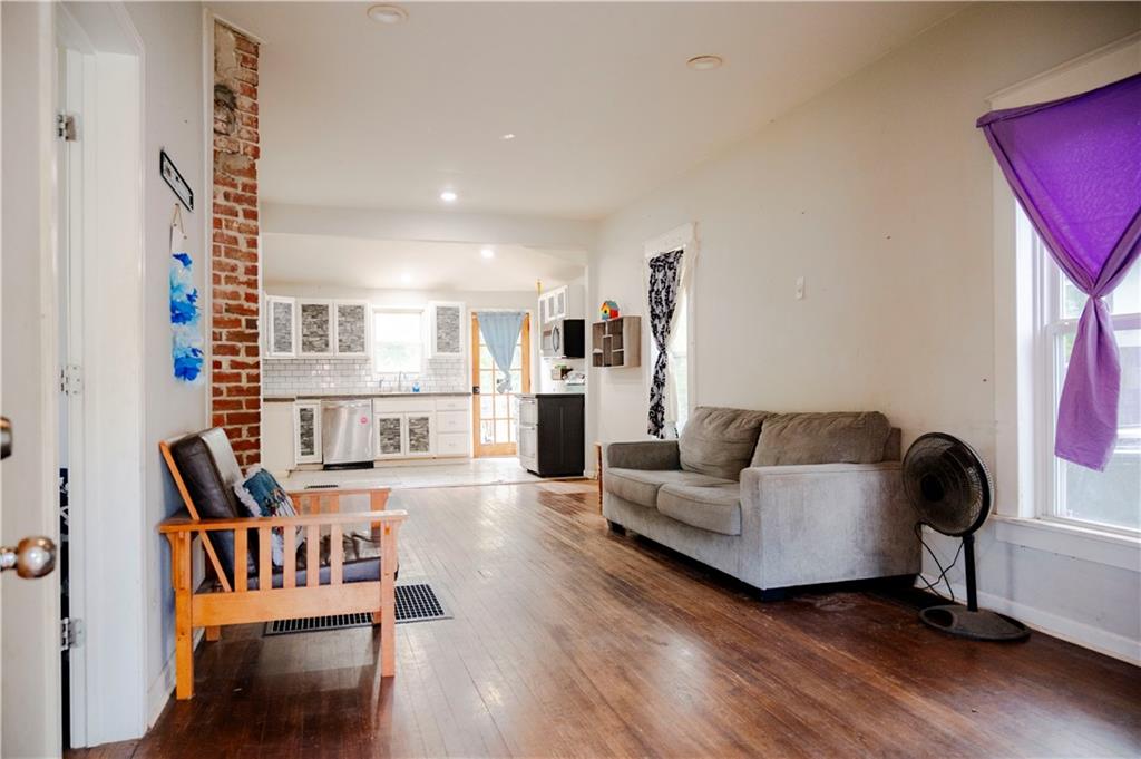Elbow grease will get you FAR with this property! 1.5 story home with 2 bedrooms and 1 full bathroom on the main level, plus additional bedroom/full bathroom on the second floor. TALL ceilings on the main level with new windows throughout! ALL appliances stay including; fridge and stacked washer/dryer. Home just needs a touch of TLC to bring it to its absolute best! Paint, kitchen flooring, and possible back deck repairs needed. In need of a deep clean. Priced accordingly.