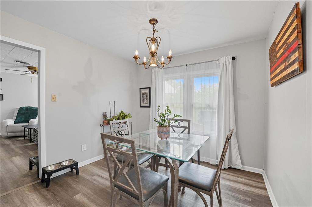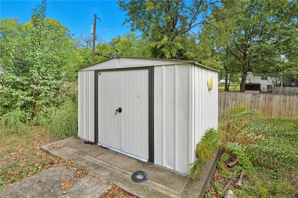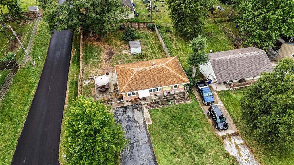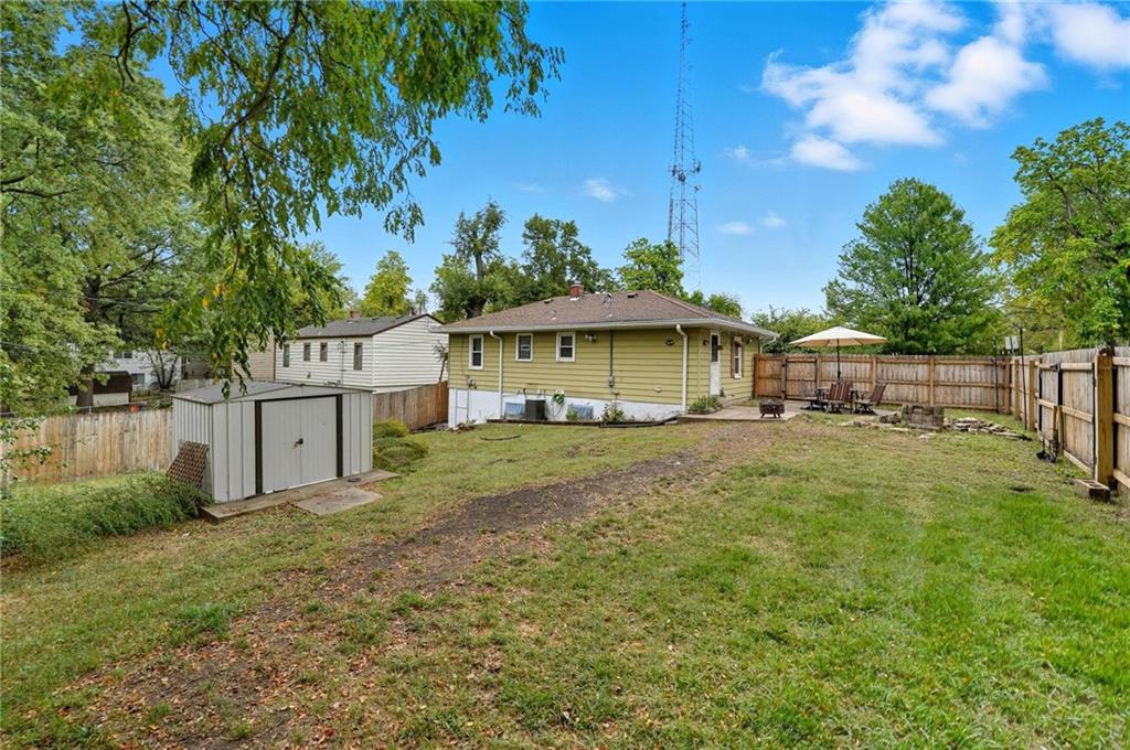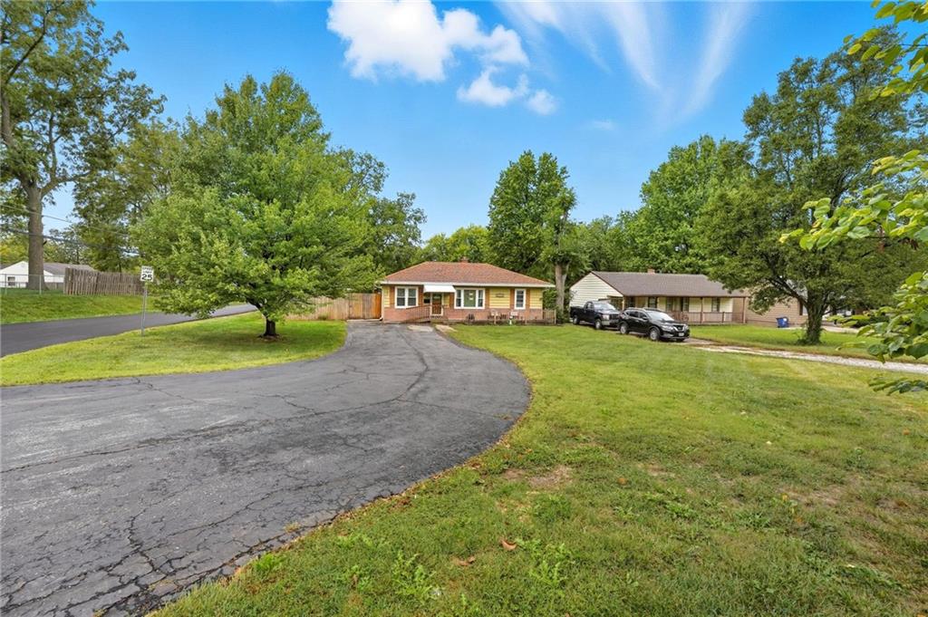 This Gladstone Ranch is in a prime location with a huge lot and North Kansas City School attendance. This home sits around the corner from Central Park, Gladstone Community Theater & Gladstone City Hall where they host many local events. The quick access to main roads, shopping and restaurants makes life convenient. The front entry leads you into the living room, bright from the large windows and the updated flooring that goes throughout the house. The kitchen has white painted cabinets and smart storage, it opens to the living room. From the main entry to the left is the dining room and to the right sits the main bathroom and two bedrooms. The laundry room and back door are located right off of the dining room. Through the back door you can walk out onto a large patio and into the back yard that has a new wooden privacy fence and a shed that stays! The basement has a walkout and daylight windows, and is an ideal space for storage!