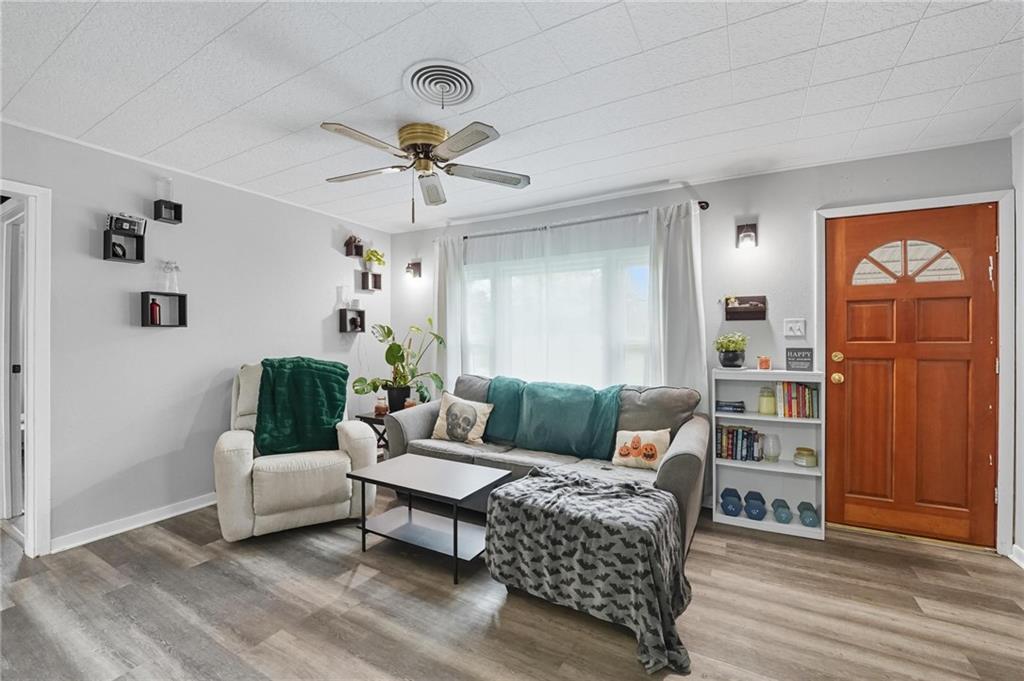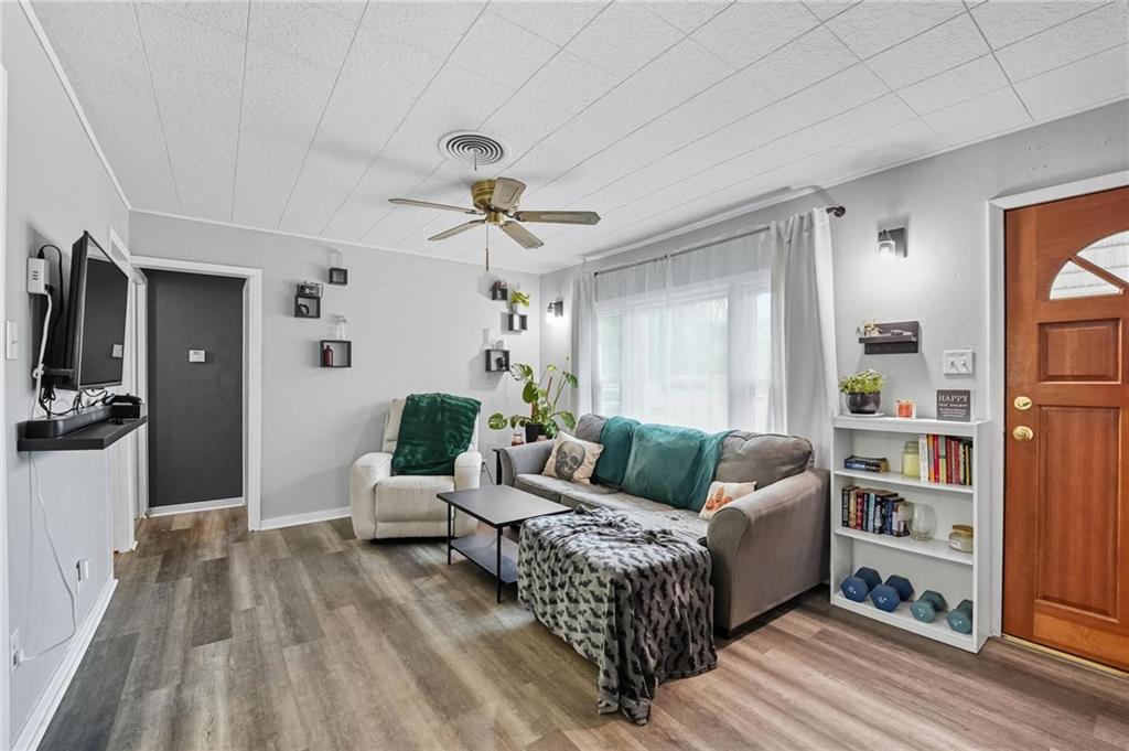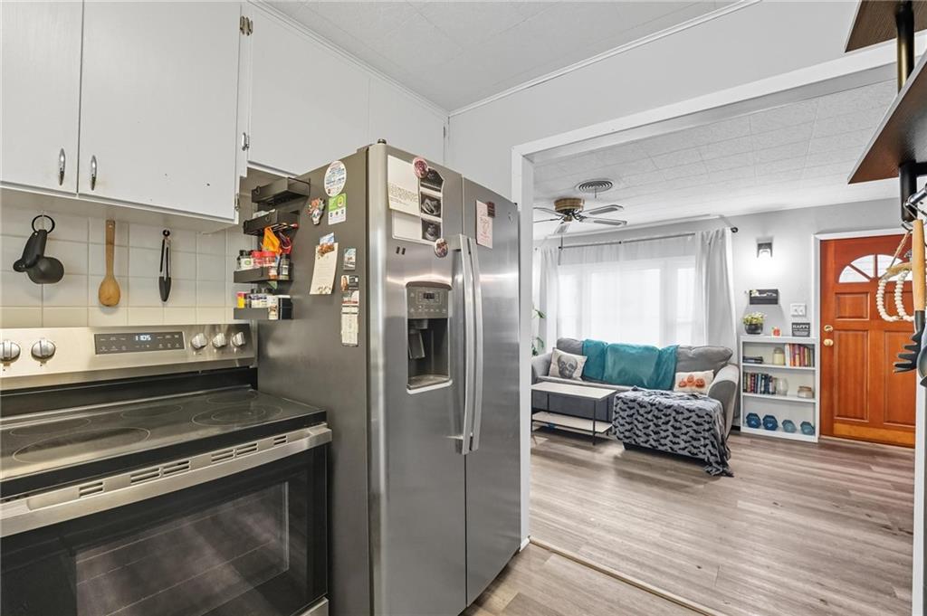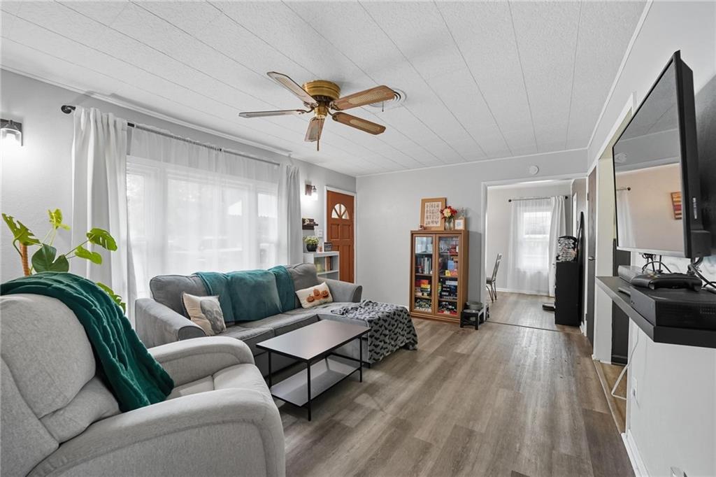 This Gladstone Ranch is in a prime location with a huge lot and North Kansas City School attendance. This home sits around the corner from Central Park, Gladstone Community Theater & Gladstone City Hall where they host many local events. The quick access to main roads, shopping and restaurants makes life convenient. The front entry leads you into the living room, bright from the large windows and the updated flooring that goes throughout the house. The kitchen has white painted cabinets and smart storage, it opens to the living room. From the main entry to the left is the dining room and to the right sits the main bathroom and two bedrooms. The laundry room and back door are located right off of the dining room. Through the back door you can walk out onto a large patio and into the back yard that has a new wooden privacy fence and a shed that stays! The basement has a walkout and daylight windows, and is an ideal space for storage!
